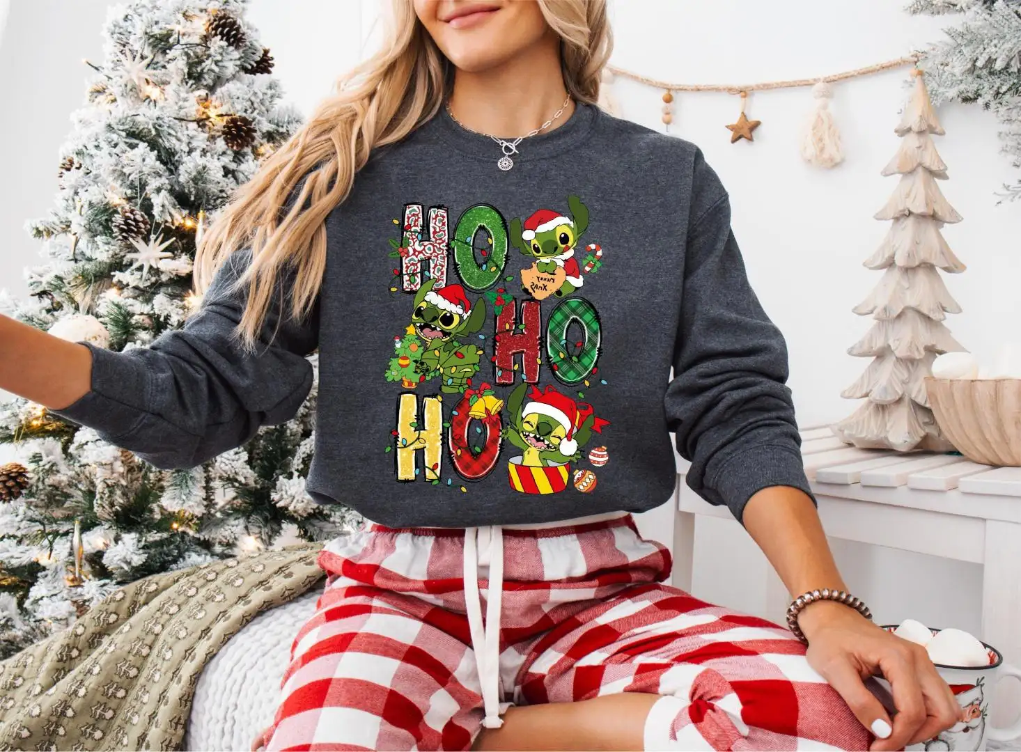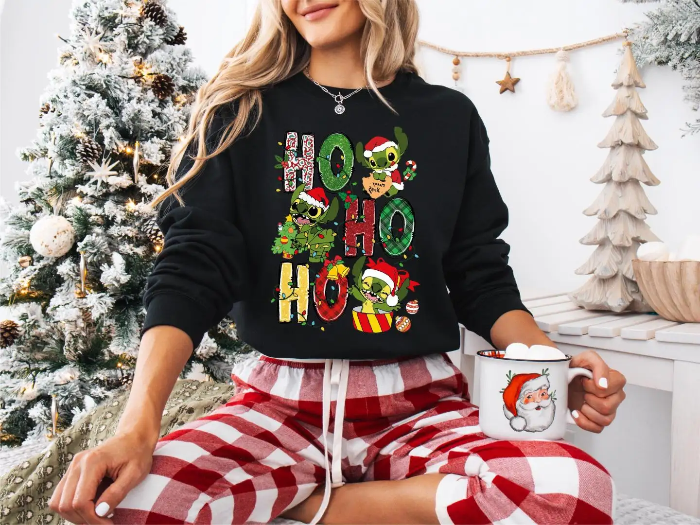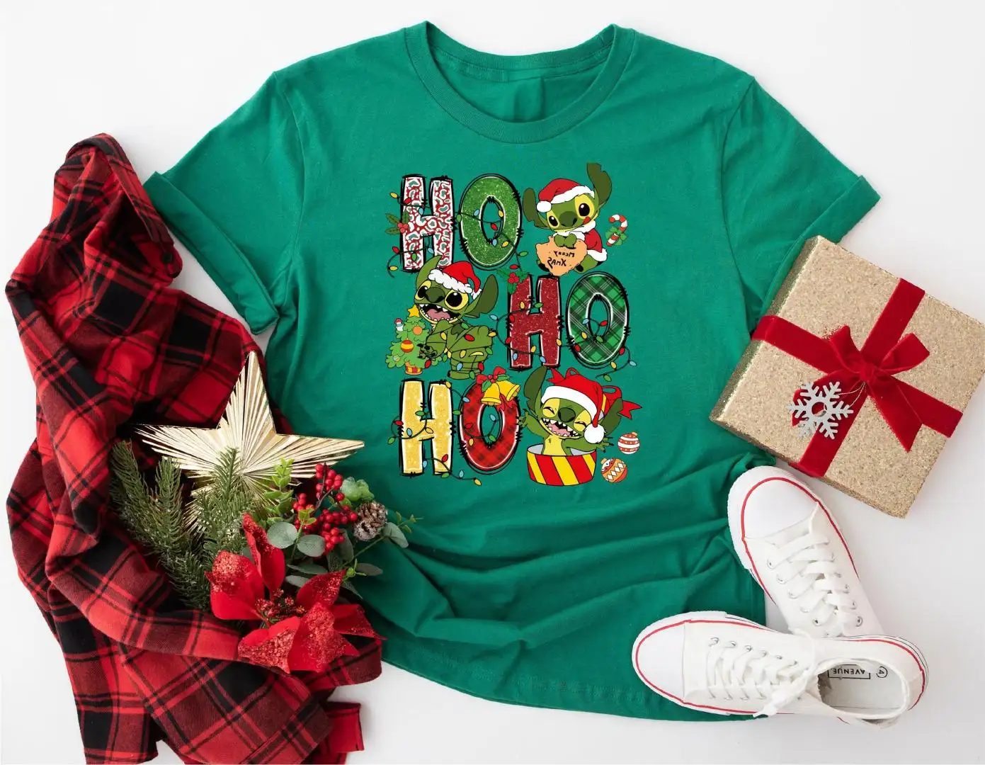 Ho Ho Ho Stitch Christmas Shirt, Stitchmas Hoodie, Disney Family Christmas Party Tee, Lilo and Stitch Sweatshirt, Kids Christmas Tee