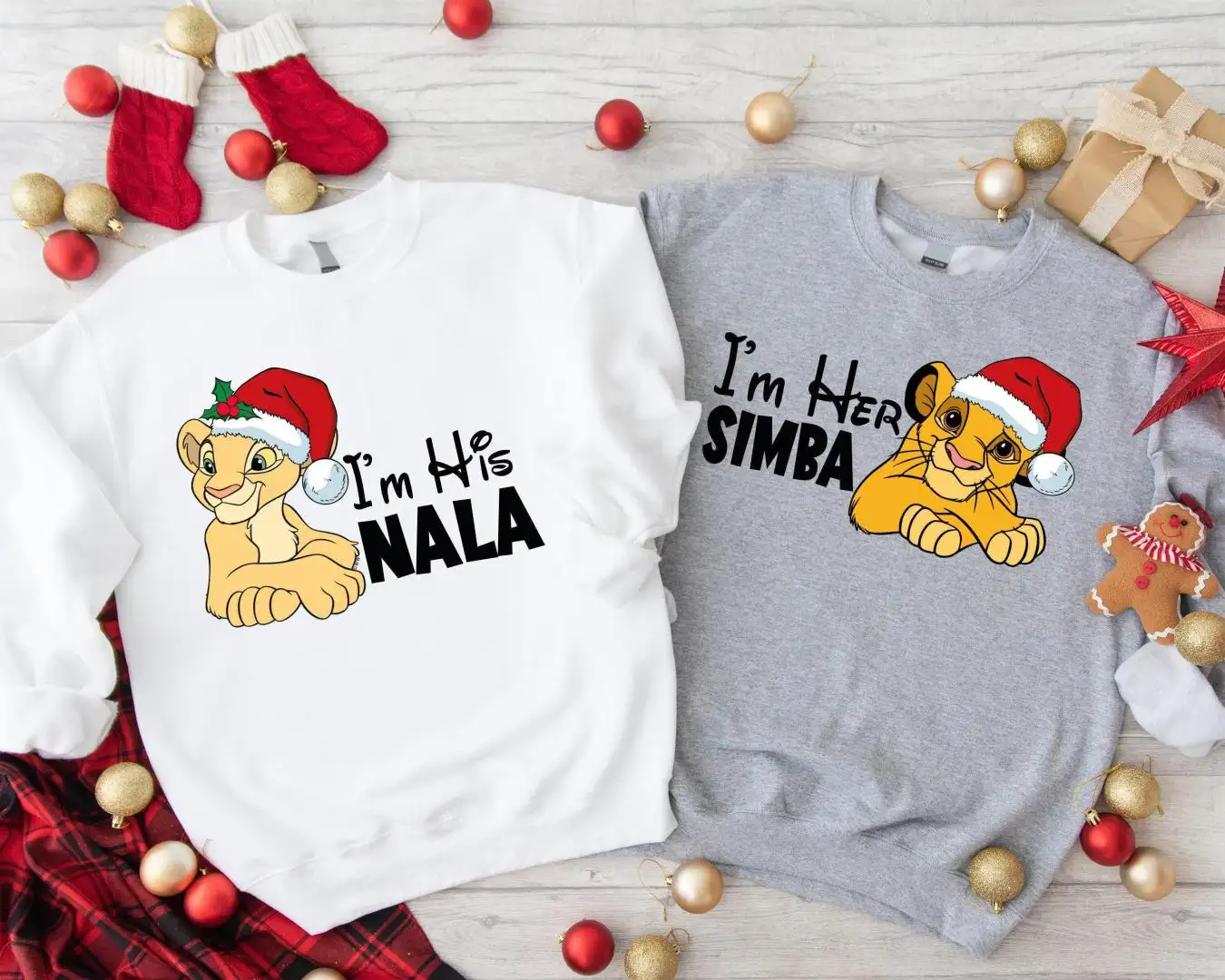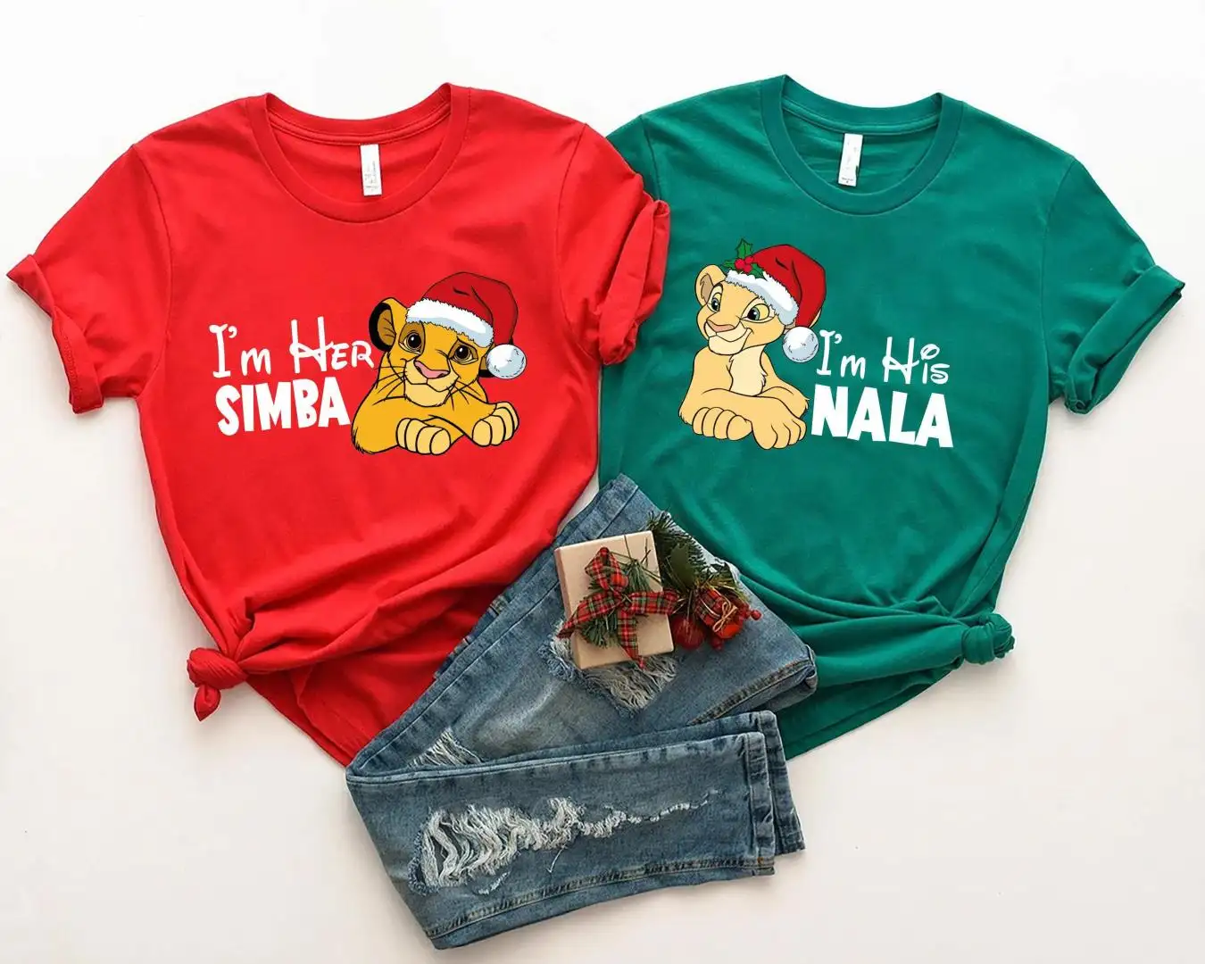 I'm His Nala I am Her Simba Christmas Shirt, Nala Xmas Tees, Lion King Couple Christmas T-shirt, Disney Xmas 2025 Sweater, Simba Xmas Gift