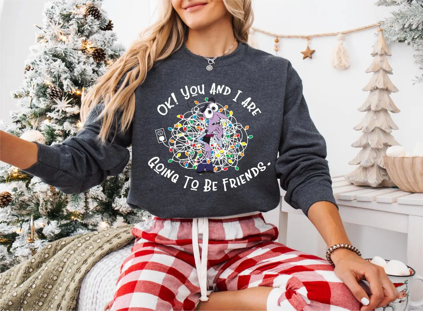 Inside Out Characters Quotes Christmas Lights Shirt, Anxiety Christmas Tee, I'm Fine Hoodie, Disneyland Family Matching Christmas Sweatshirt