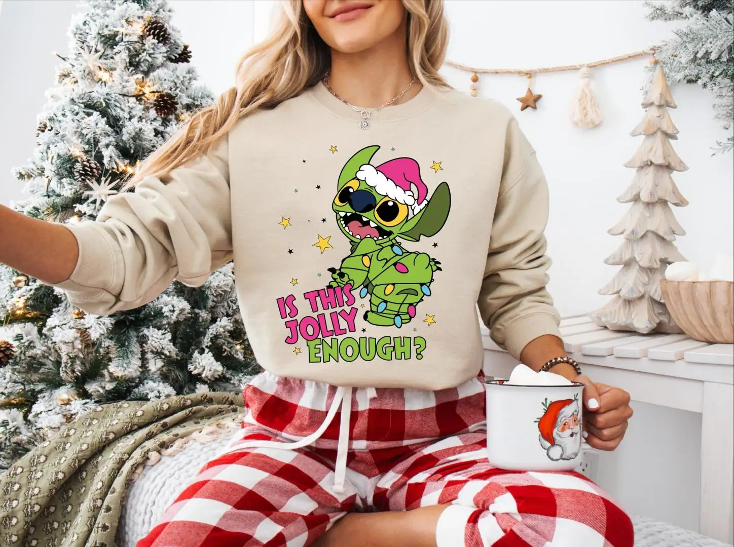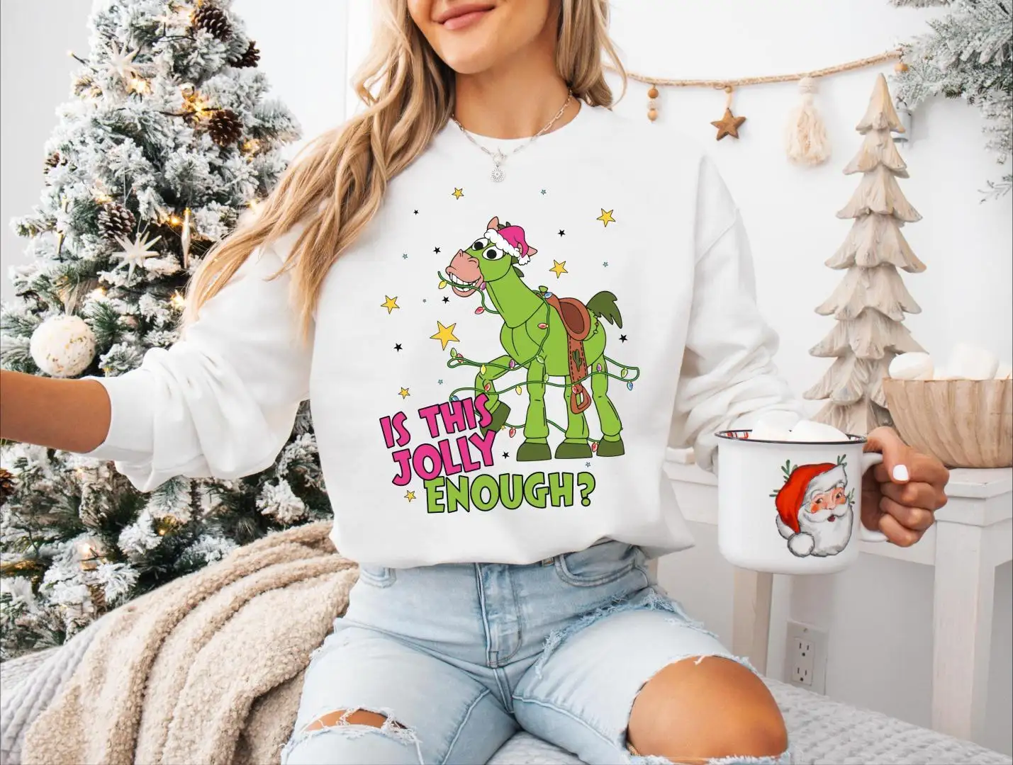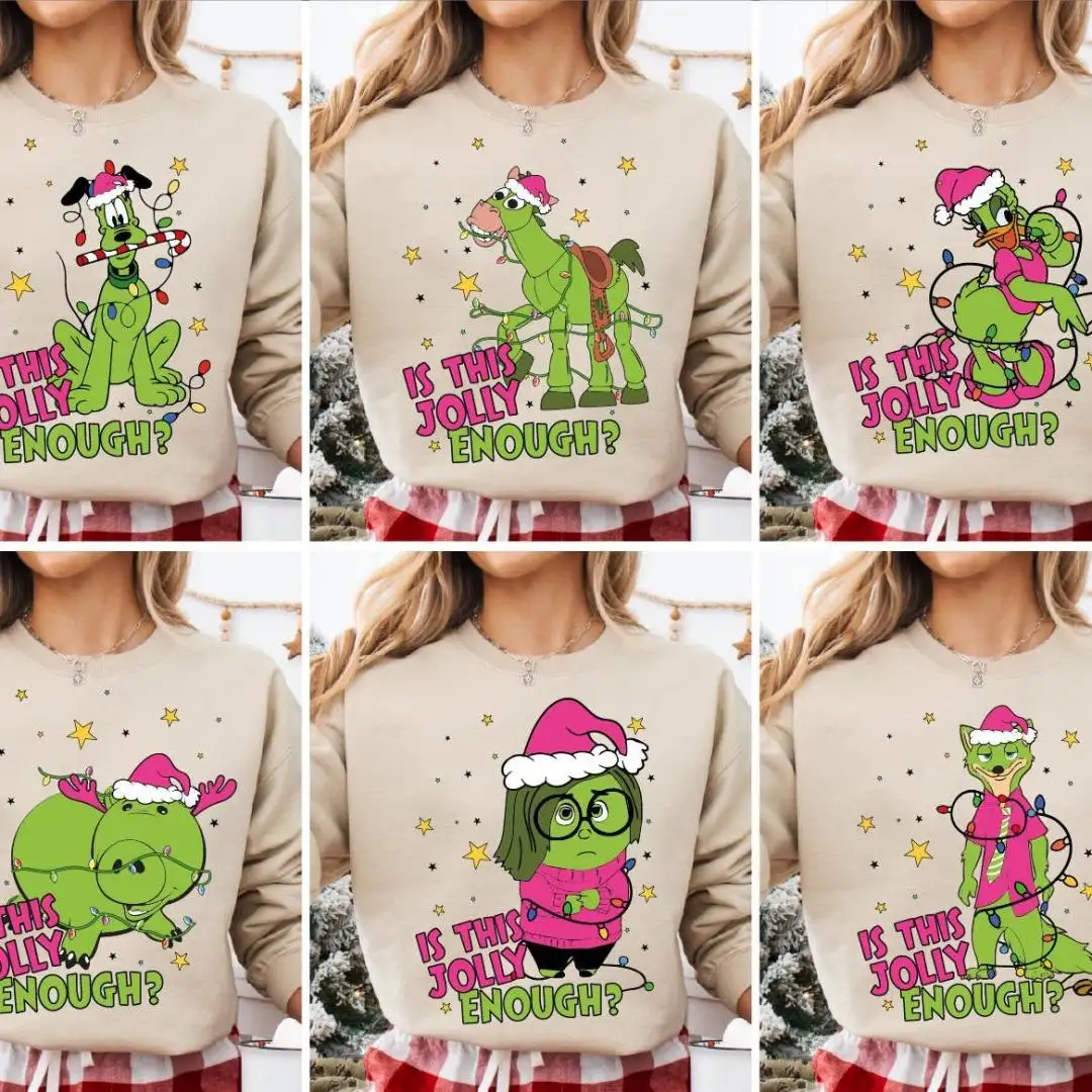 Is This Jolly Enough Christmas Disney Characters Shirt, Green Disney Characters Christmas Light Jolly Tee, Disney Funny Christmas Sweatshirt