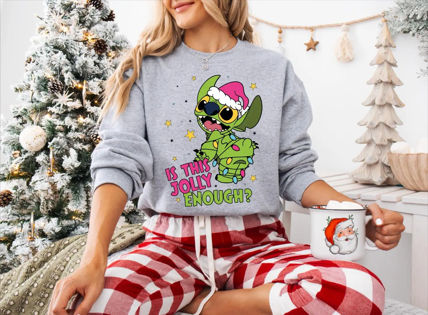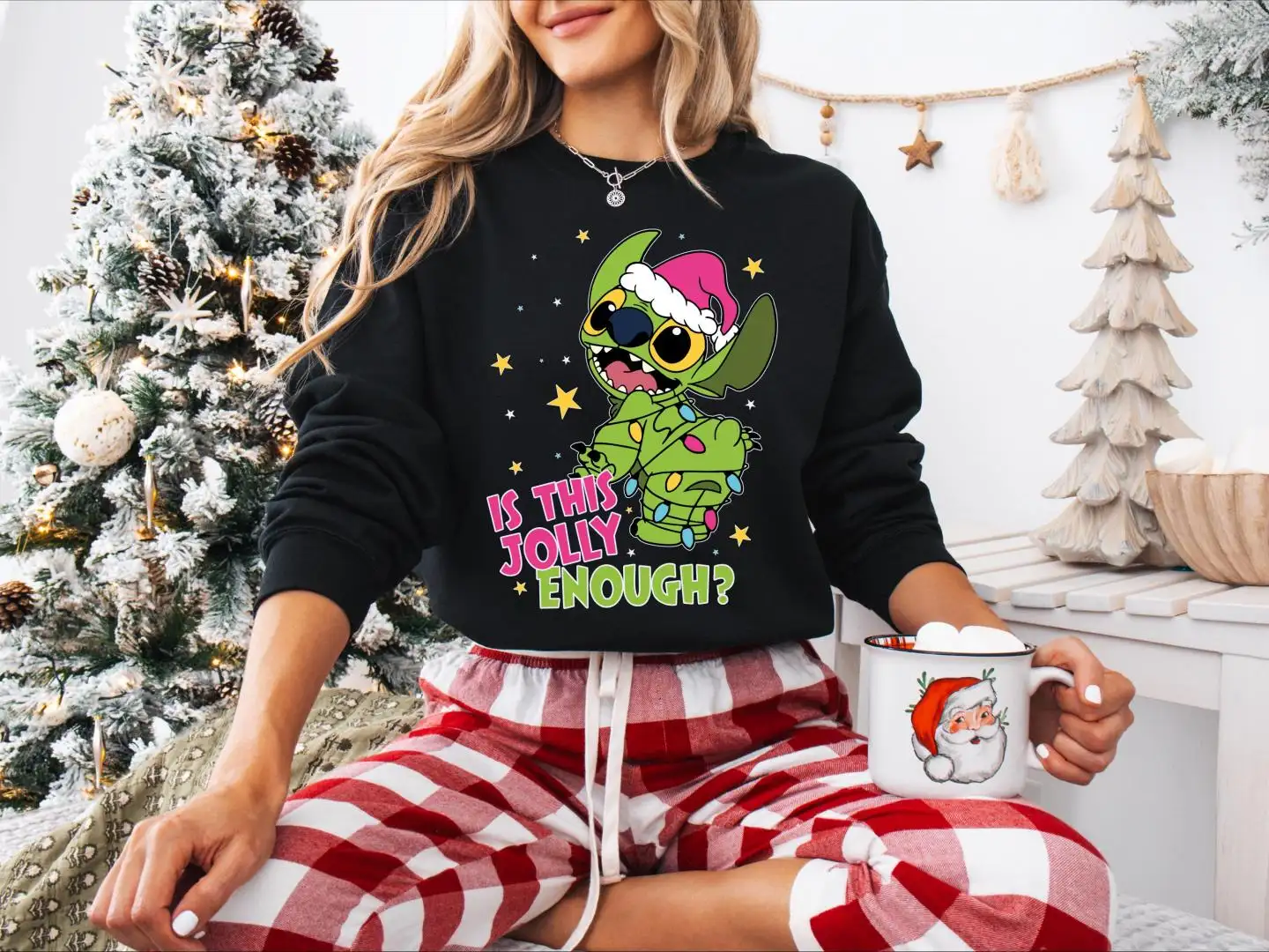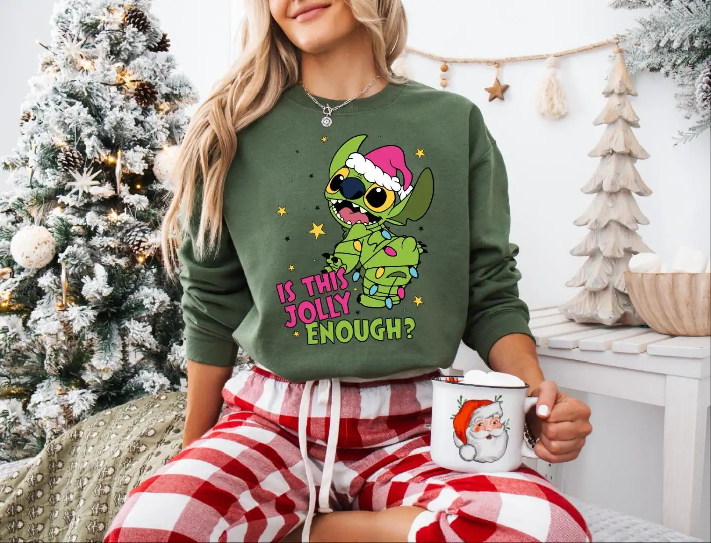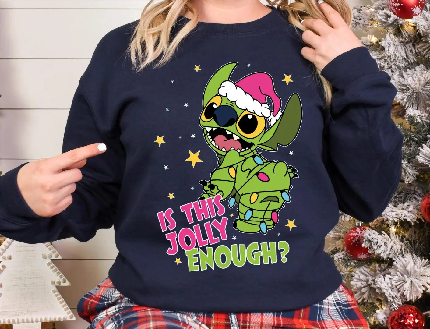 Review Is This Jolly Enough Stitch Christmas Shirt, Christmas Lights Jolly Stitch, Disney Stitch Christmas Sweatshirt, Funny Green Stitch Sweater