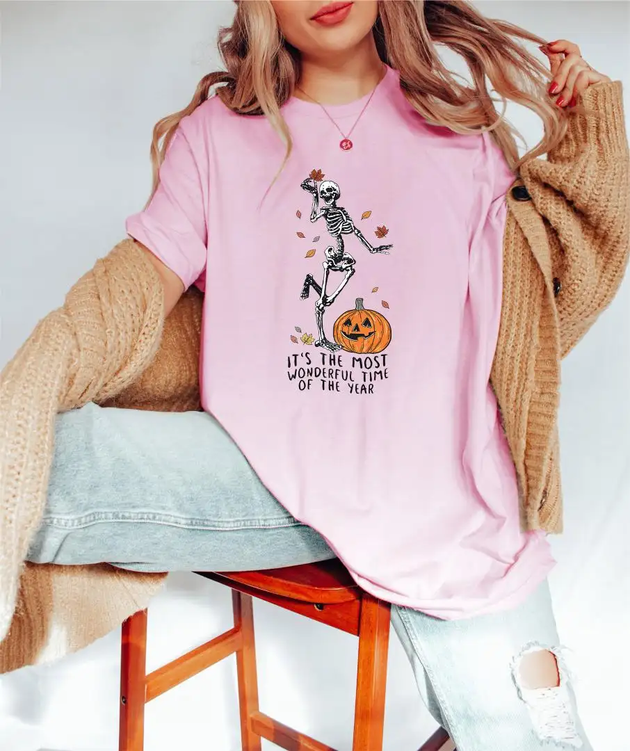 Review It's The Most Wonderful Time Of The Year, Halloween Pumpkin, Fall Shirt, Halloween Gifts, Dancing Skeleton Shirt, Halloween Skeleton Shirt