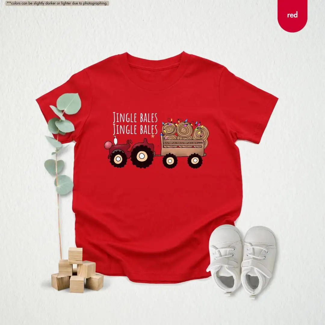 Jingle Bales Christmas Shirt, Christmas Tree, Cute Xmas Tee, Toddler Christmas Shirt, Boys Christmas Tractor Shirt, Baby Boy Christmas Outfit