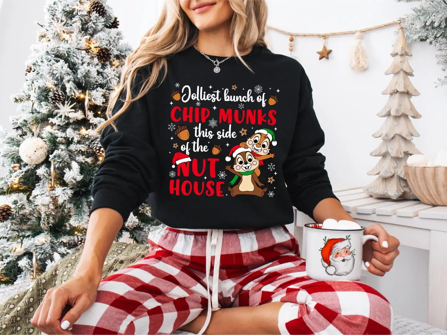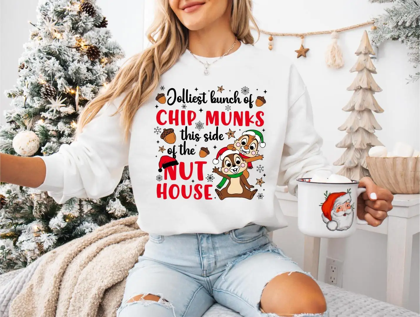 Review Jolliest Bunch Of Chipmunks Shirt, This Side Of The Nut House Chip 'N Dale Christmas Sweatshirt, Chip And Dale Disney Christmas Trip Hoodie