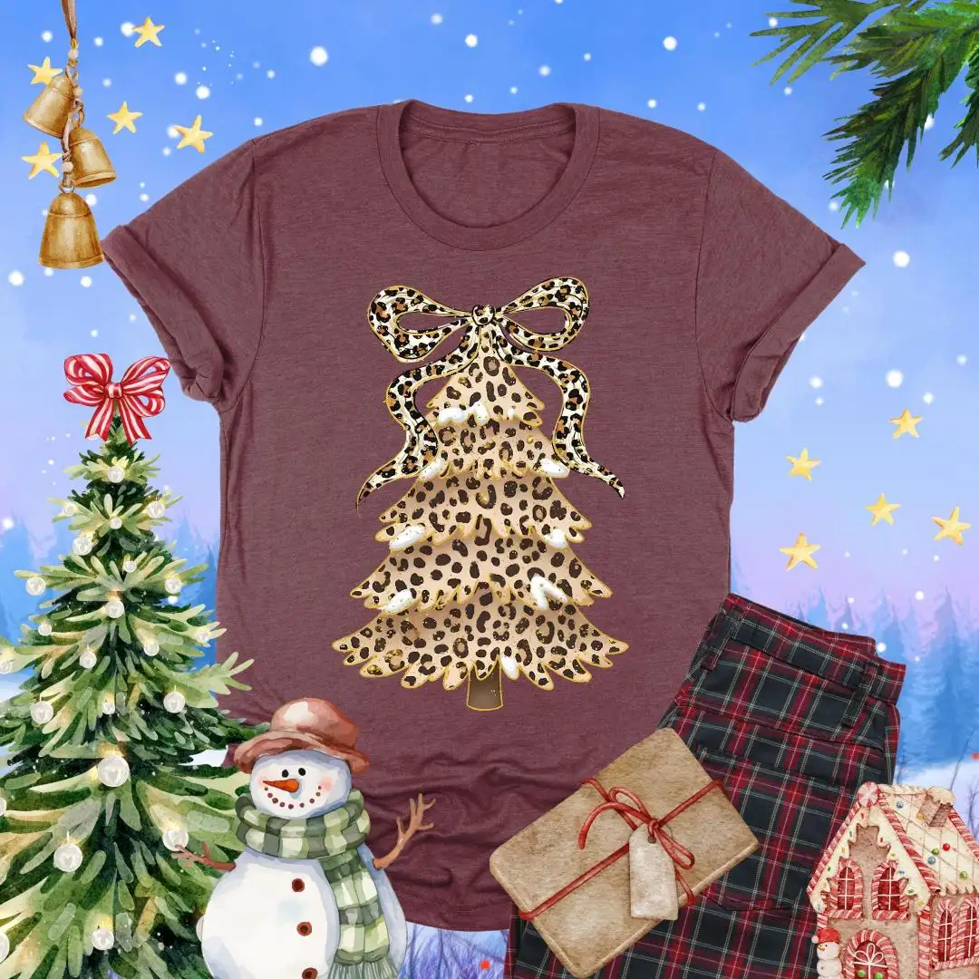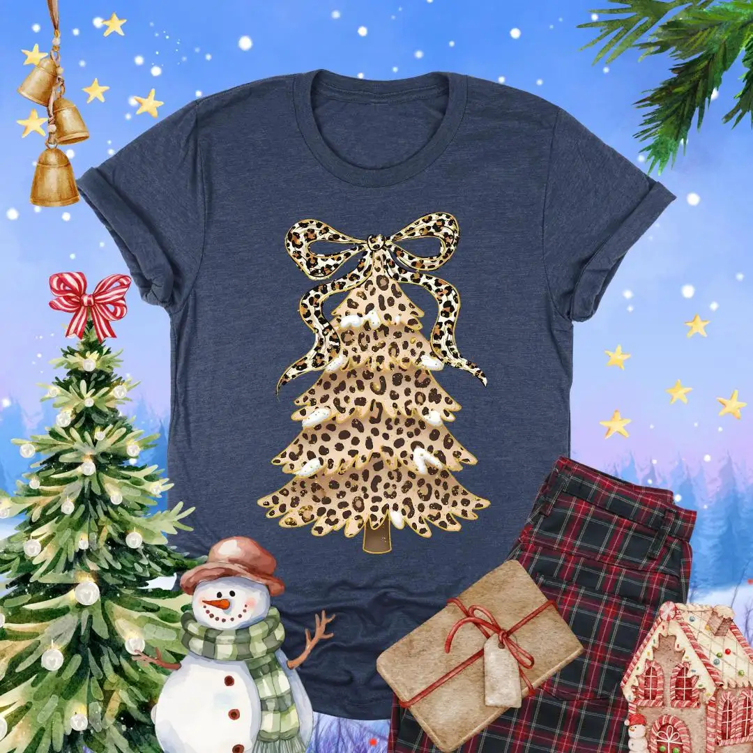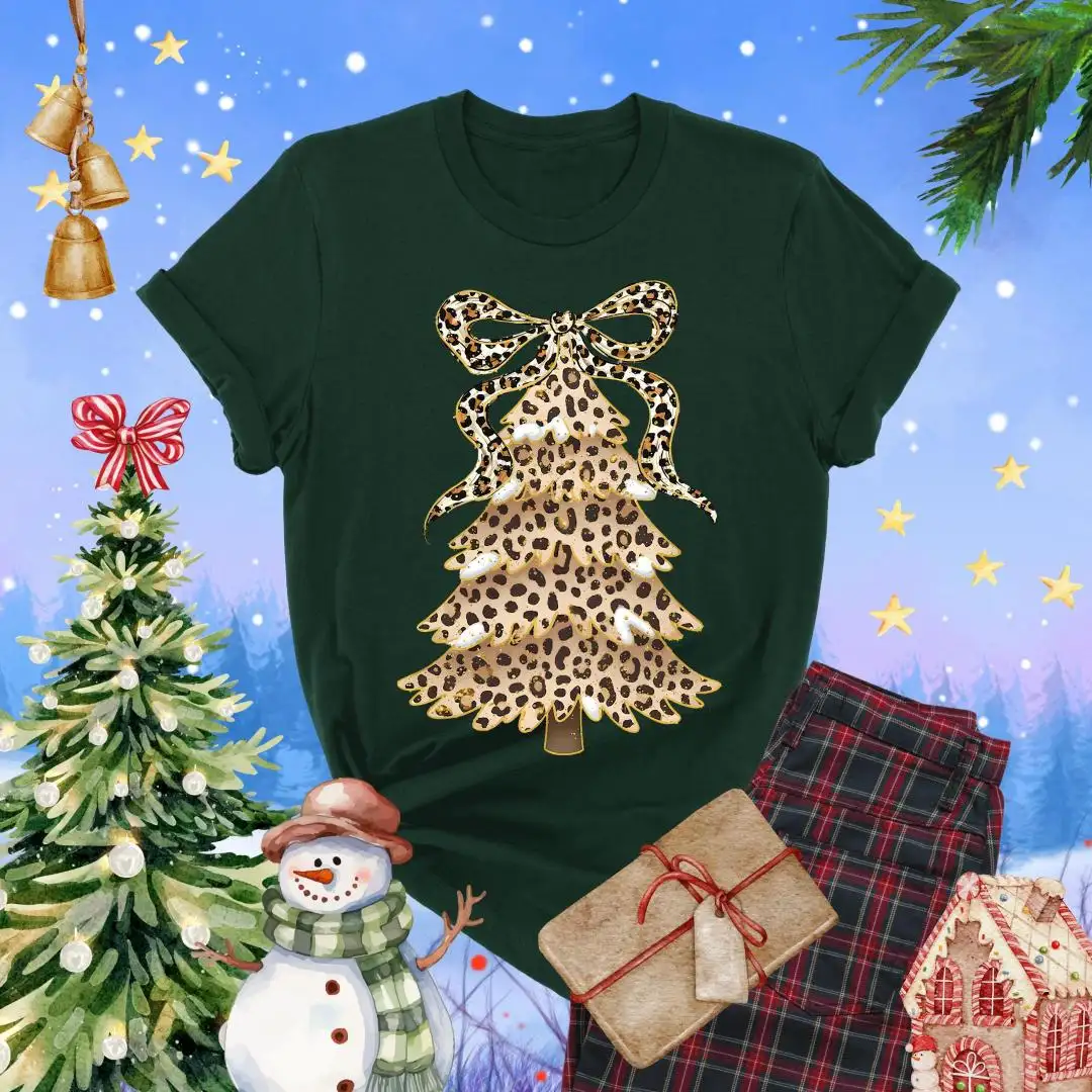 Leopard Christmas Tree Shirt, Holiday Shirt For Women