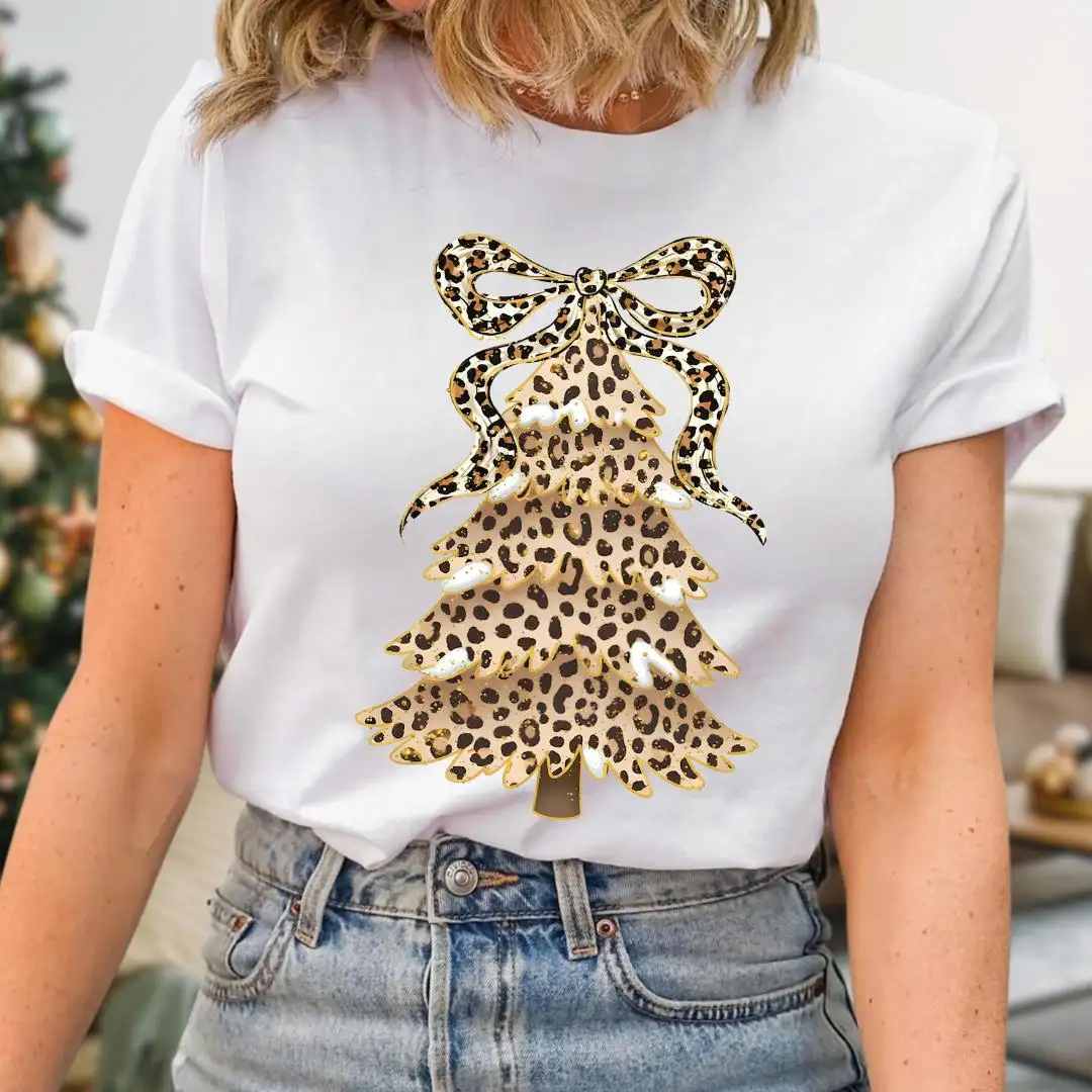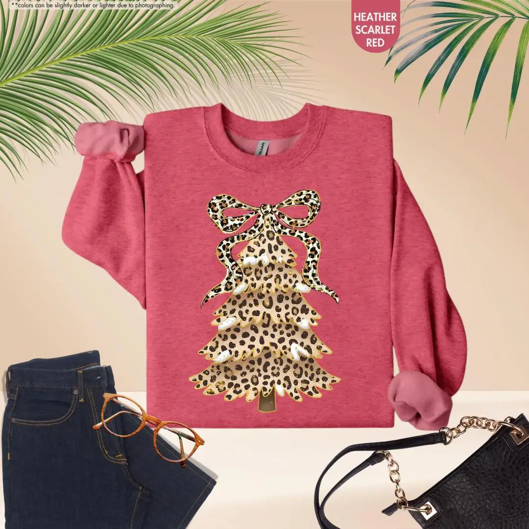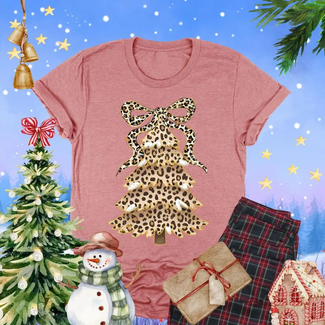 Leopard Christmas Tree Shirt, Holiday Shirt For Women
