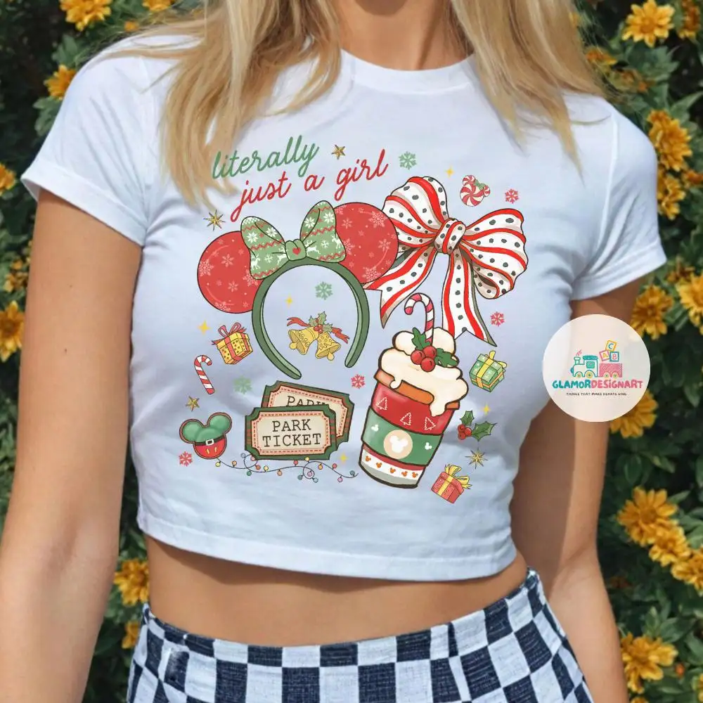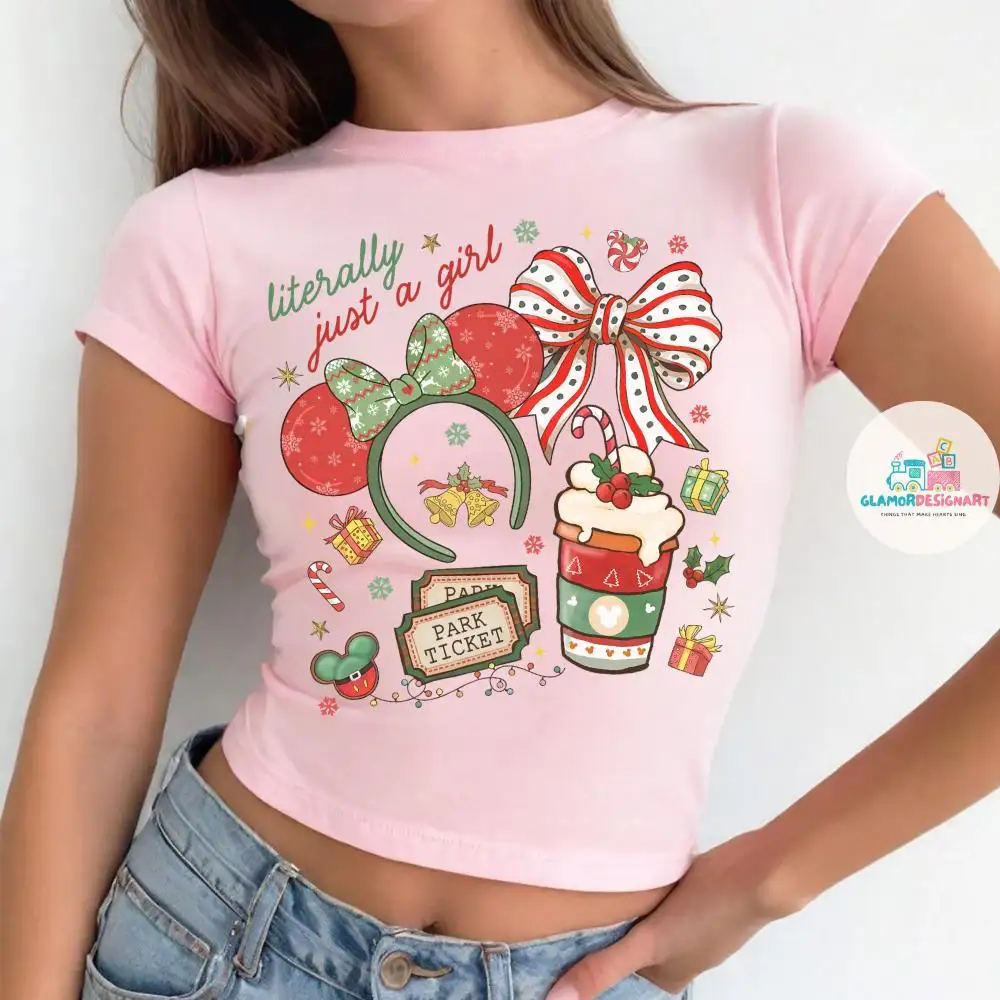 Literally Just A Girl Christmas Baby Tee Minnie Bow Coffee Baby Tee, Disney Christmas Shirt Disneyland Christmas Tee Disney Girl's Trip