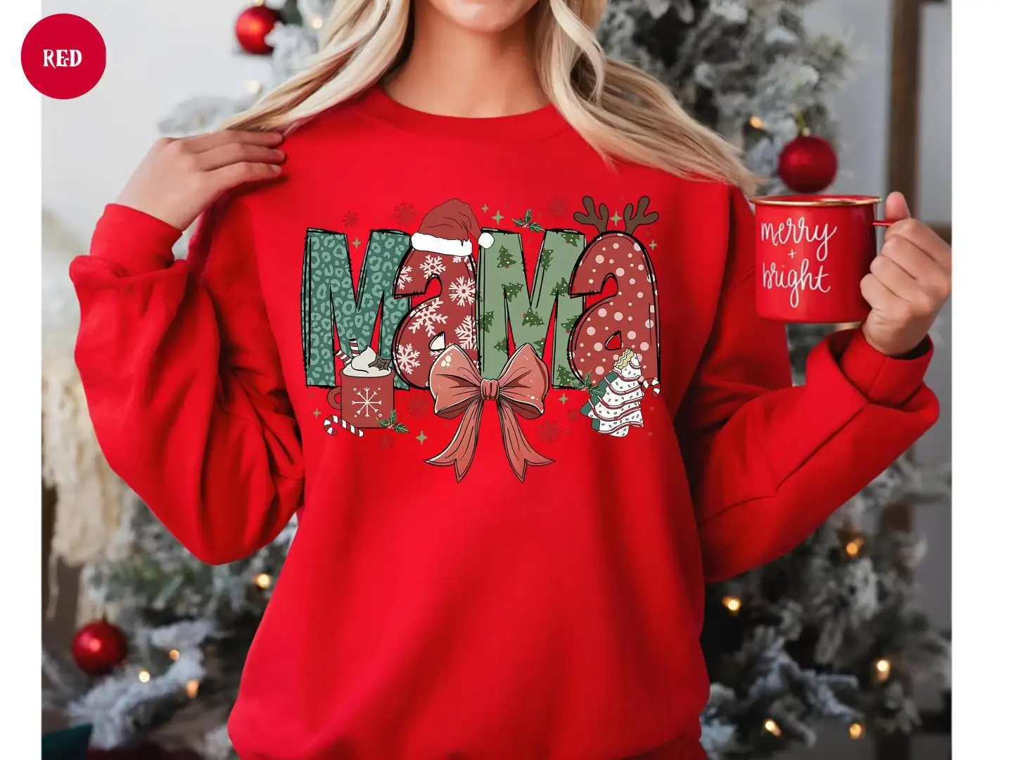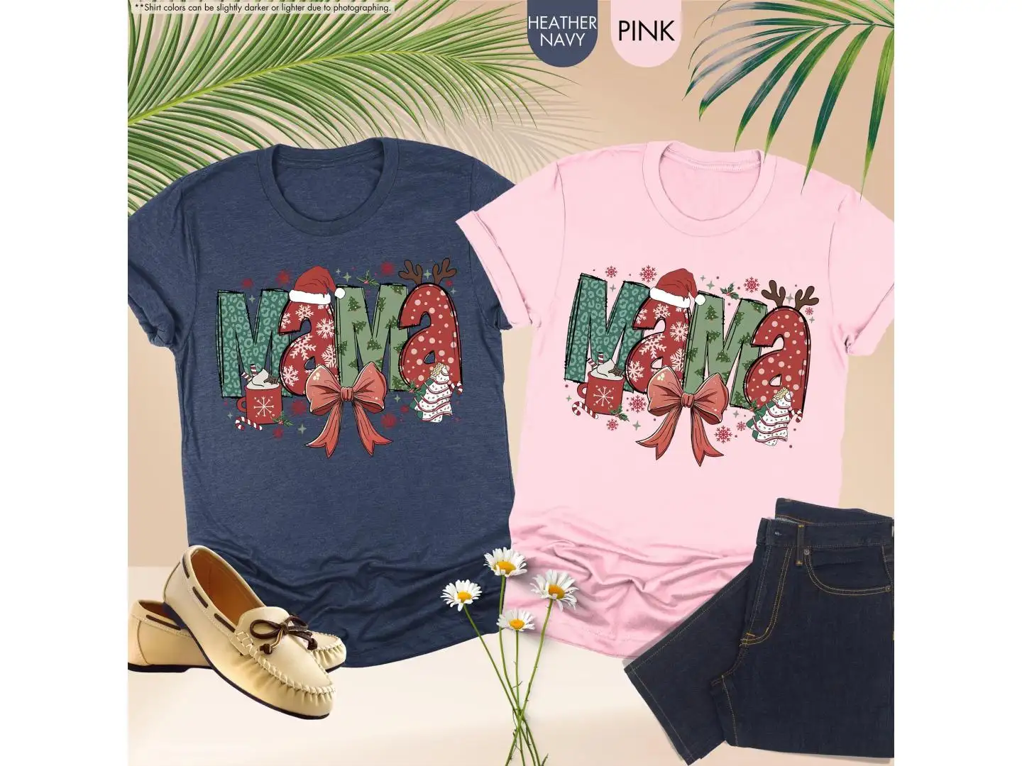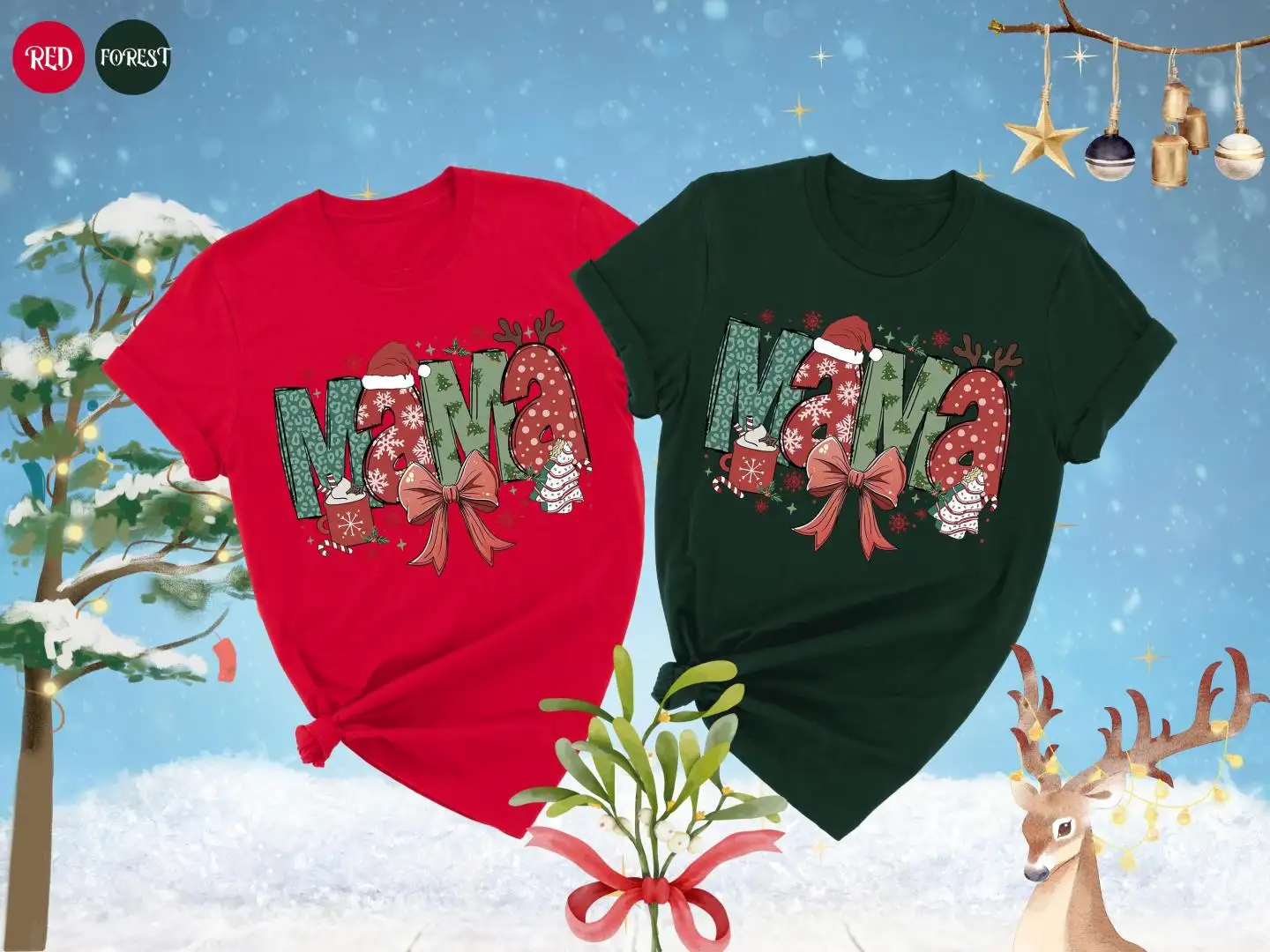 Mama Christmas Shirt, New Mom Gift, Winter Shirt, Christmas Coquette Bow Shirt, Cute Holiday Shirt, Cozy Christmas Gift, Xmas Tee for Moms