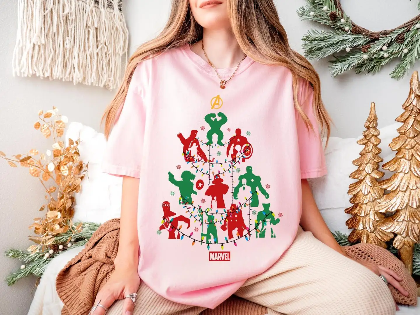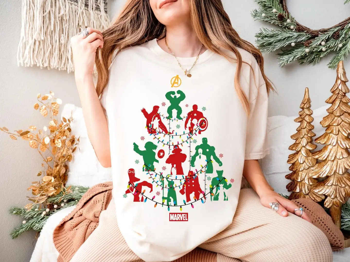 Marvel Avengers Christmas Tree Toddler T-Shirt, Super Hero Xmas Shirt, Disneyland Xmas Holiday Tee, Hulk Captain America Xmas Lights Tee