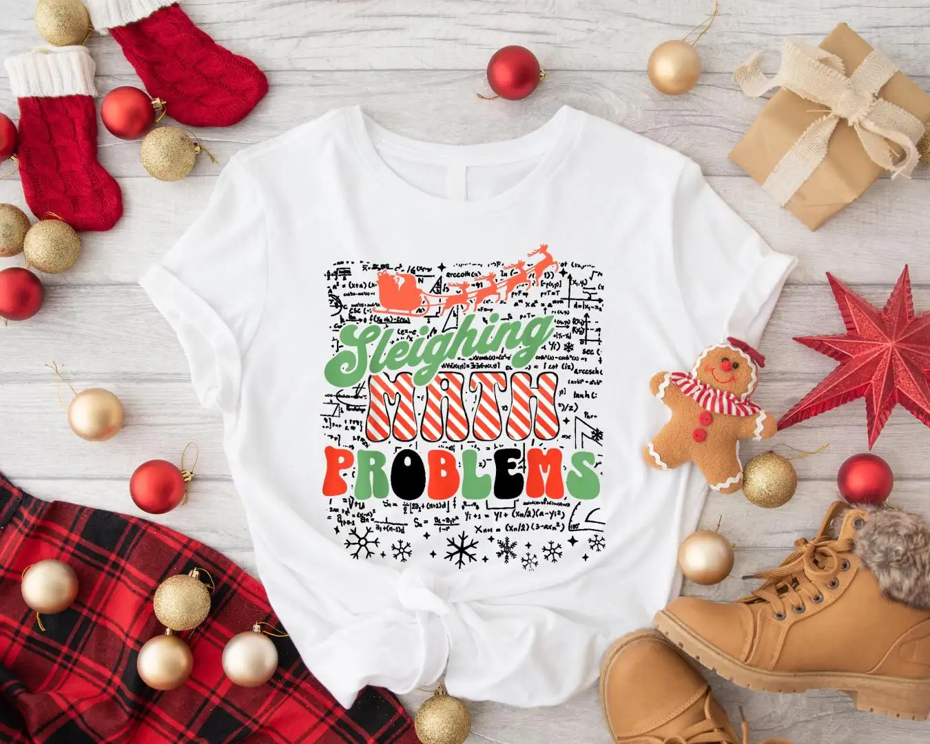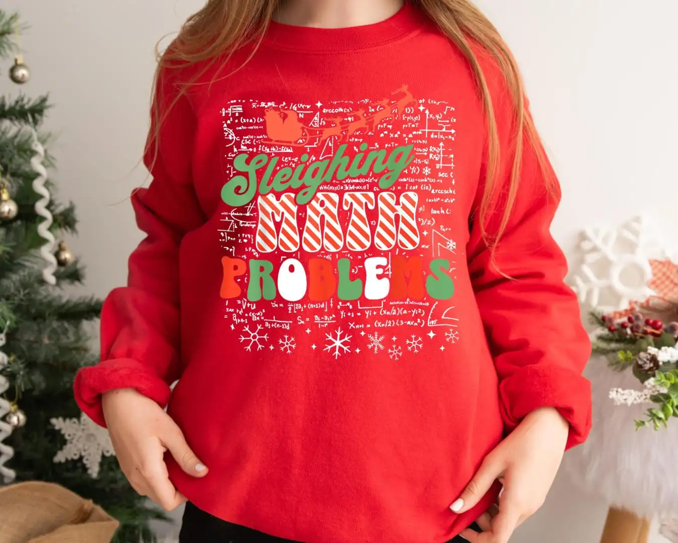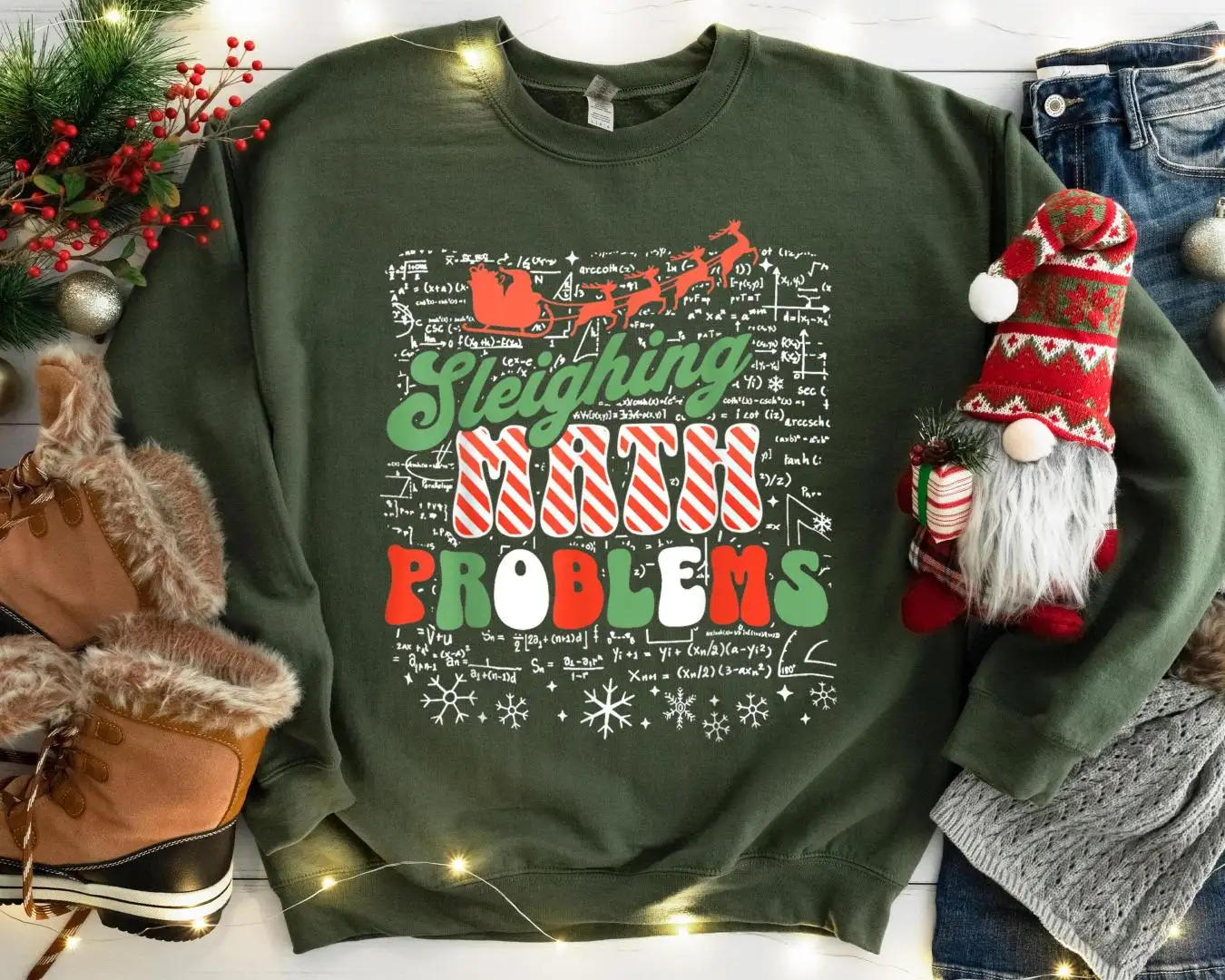 Math Teacher Christmas Shirt, Sleighing Math Problem Xmas Shirt, Funny Math Teacher Xmas Shirt, Teacher Holiday Tee, School Xmas Party Shirt