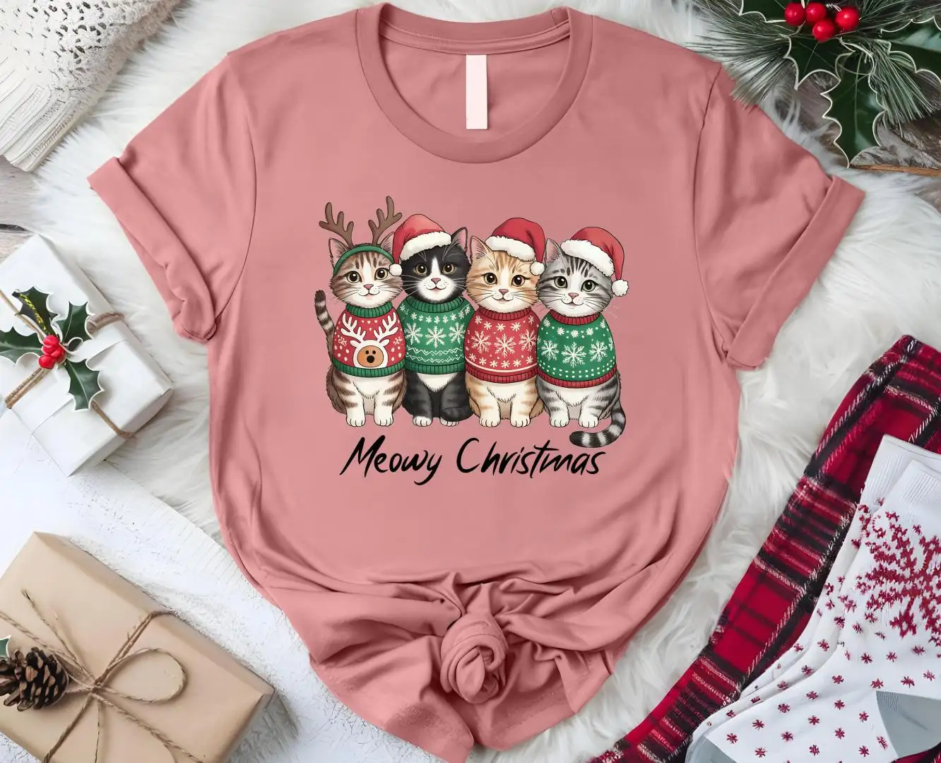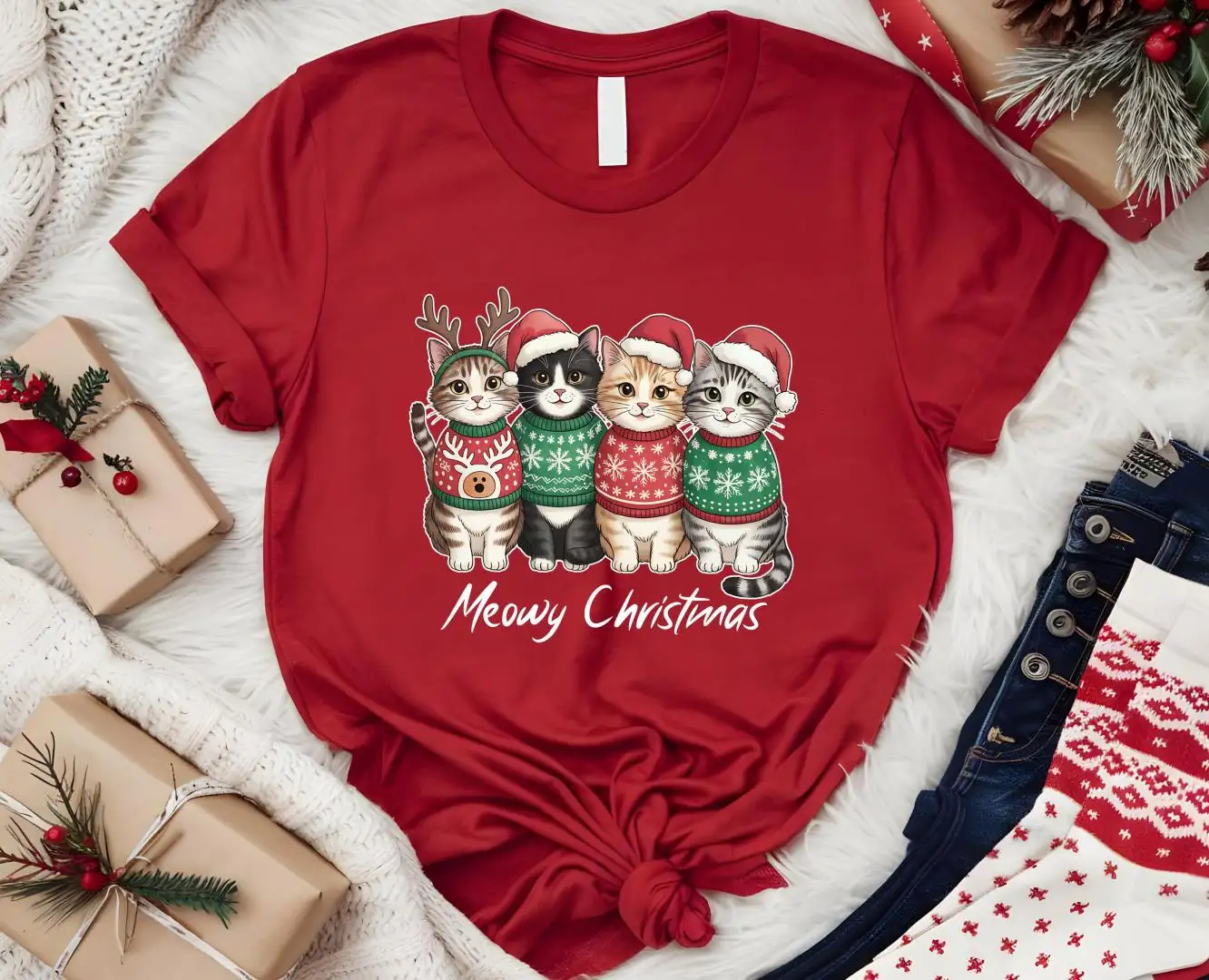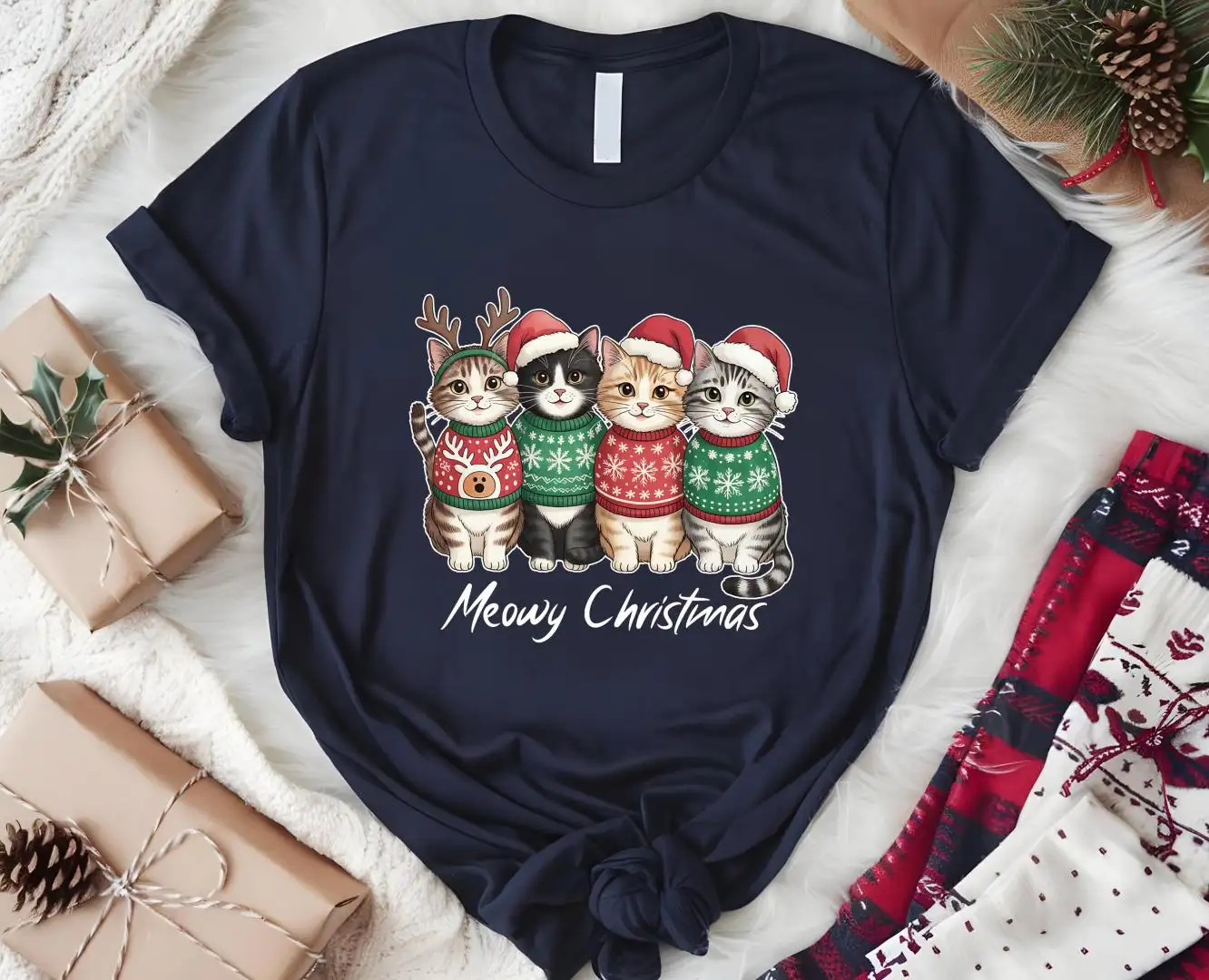 Meowy Christmas Shirt, Cute Cats Shirt, Christmas Sweatshirt, Christmas Cat Shirt, Christmas Gift For Cat Lover, Christmas Cat Mom Sweater