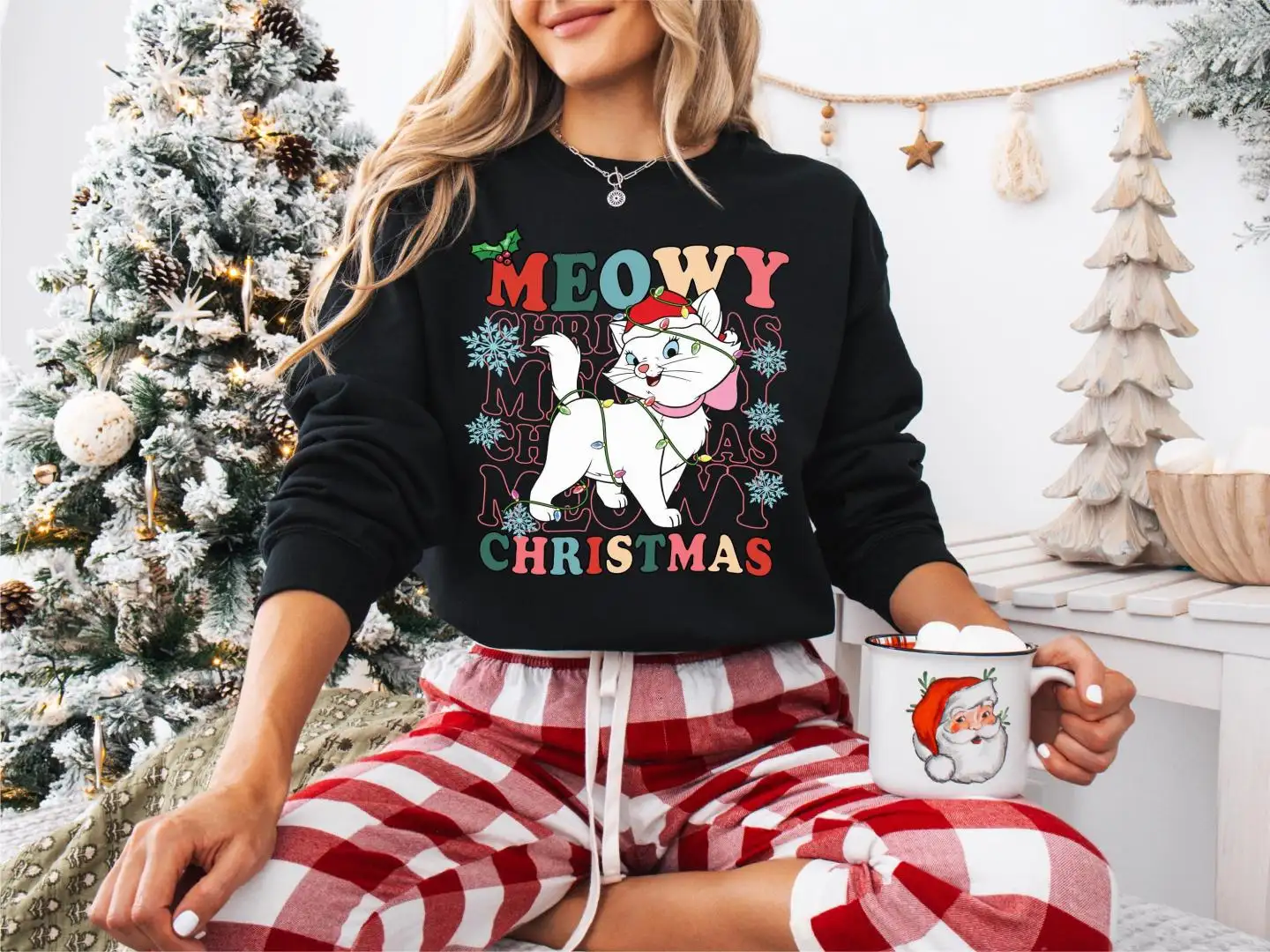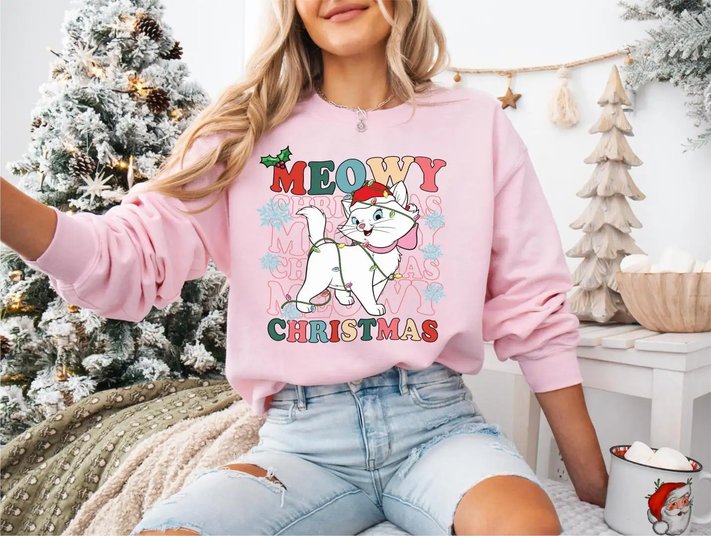Meowy Christmas Shirt, Disney Christmas Cat Sweatshirt, Disney Aristocats Tee, Aristocats Marie Christmas Tee, Disneyland Marie Cat Hoodie