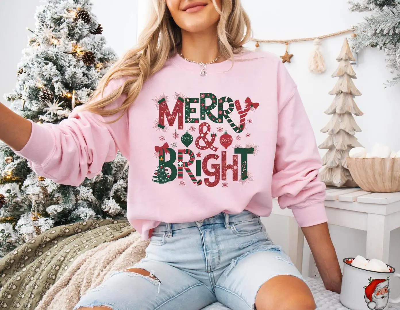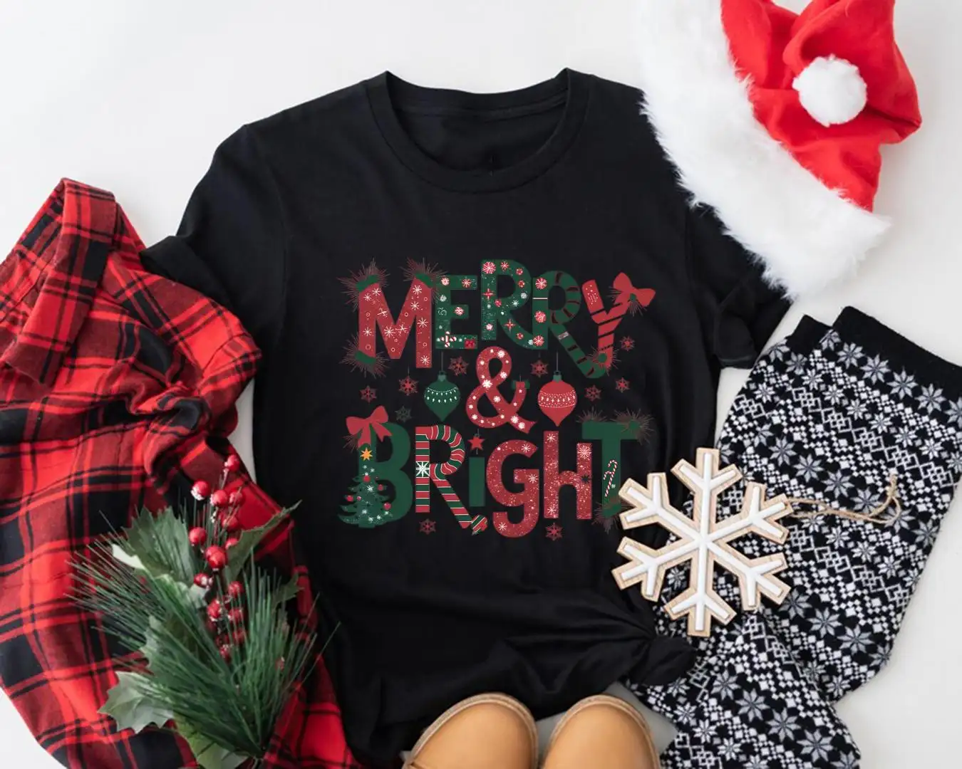 Merry and Bright T-shirt, Christmas Girls Vacation Hoodie, Christmas Girls Party Tee, Very Merry Christmas Sweatshirt
