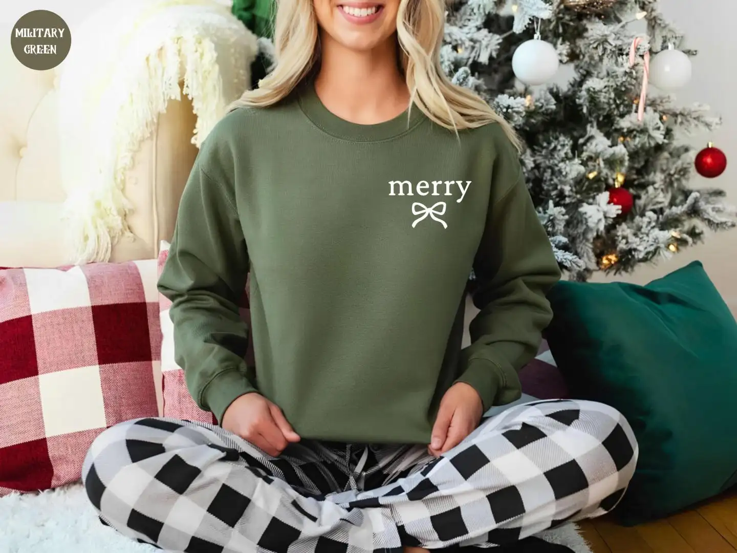 Review Merry Christmas Bow Shirt, Xmas Party Gift, Cozy Girl’s Winter Graphic Shirt, Christmas Aesthetic Tee, Minimalist Holiday Shirt For Women