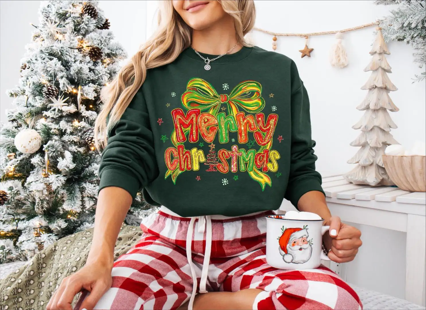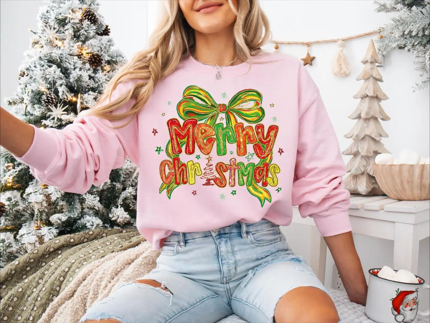 Review Merry Christmas Bow Tree Shirt, Shiny Christmas Tree and Bow Sweatshirt, Christmas Coquette Bow Sweater, Merry Christmas Shirt