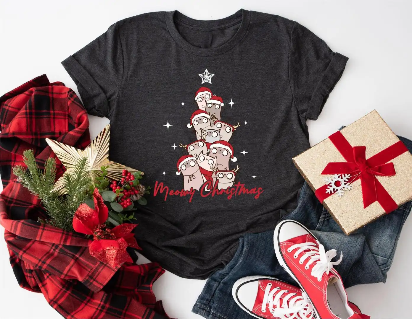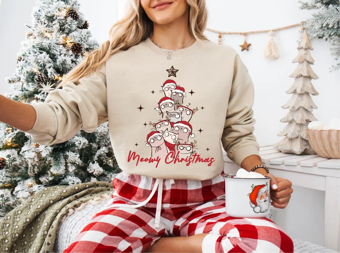 Review Merry Christmas Funny Cats Shirt, Christmas Holiday Shirt, Cats Lover Sweatshirt, Cats Christmas Tree Hoodie, Meowy Christmas Sweatshirt