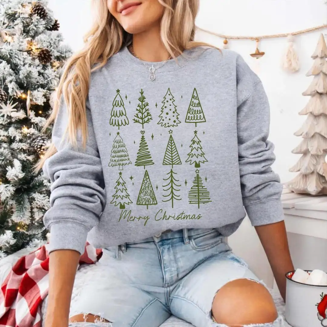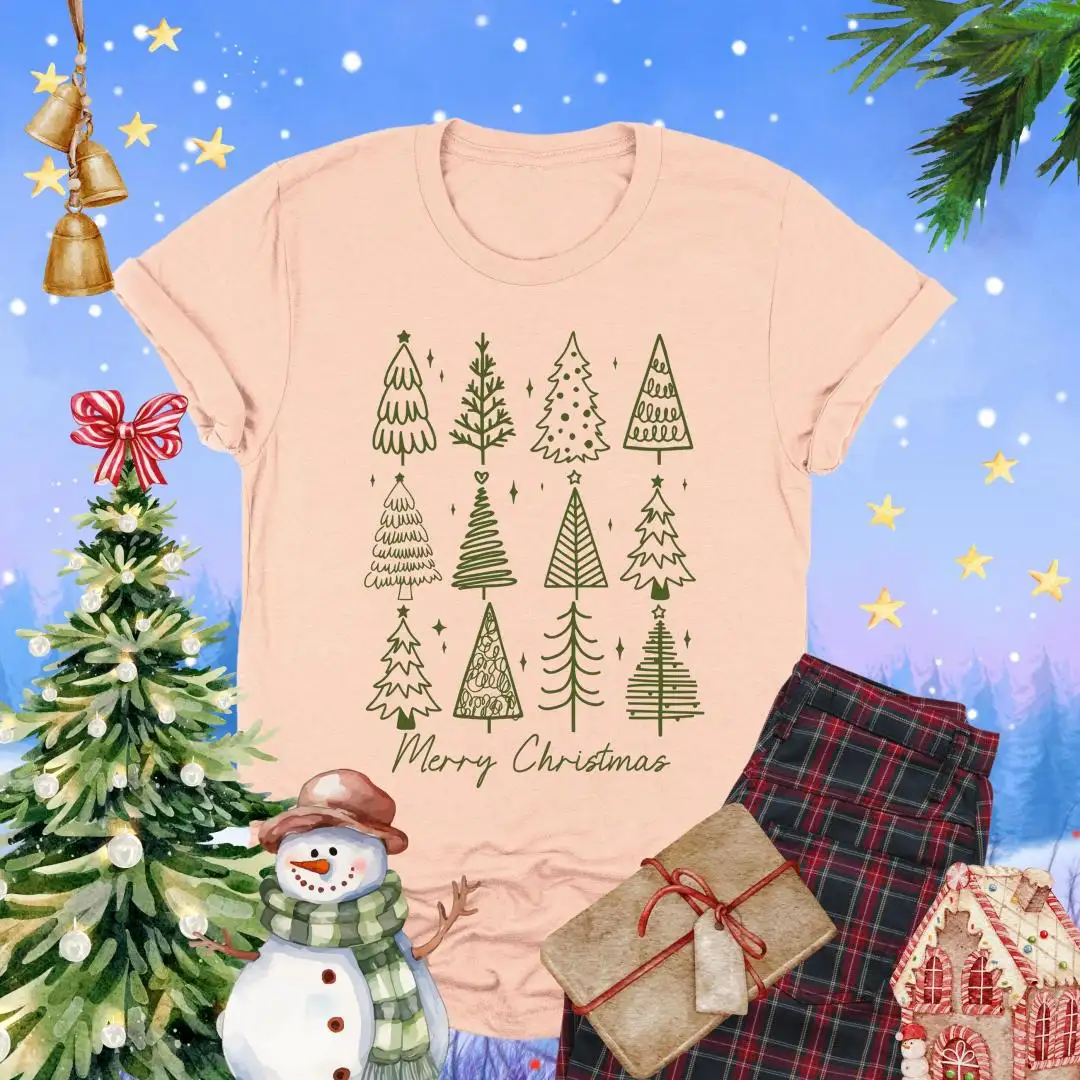 Merry Christmas Shirt, Holiday Gift For Women, Christmas Vacation Shirt, Minimalist Xmas Shirt, Winter Season, Christmas Pine Trees Shirt