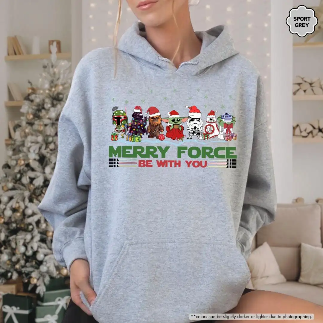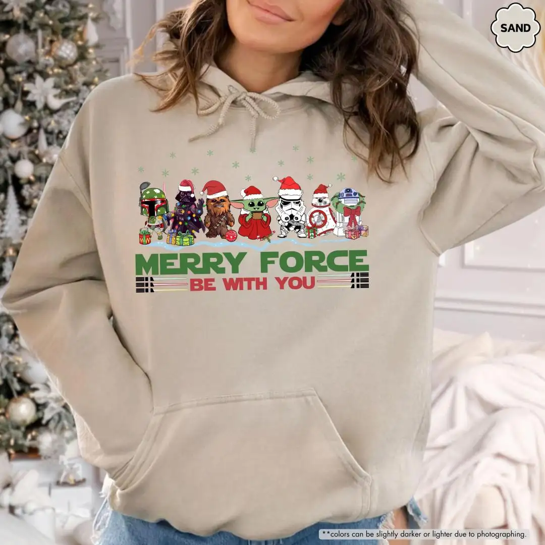 Merry Force Be With You Sweatshirt, Star Wars Holiday Sweater, Disney Christmas Hoodie, Funny Sci Fi Gift, Winter Disney Trip Sweatshirt