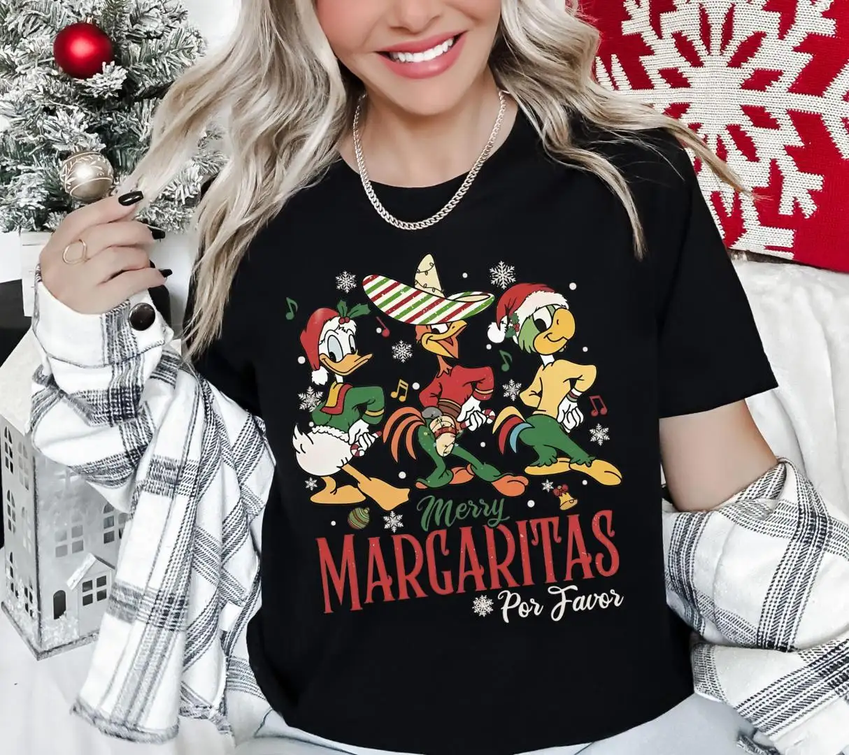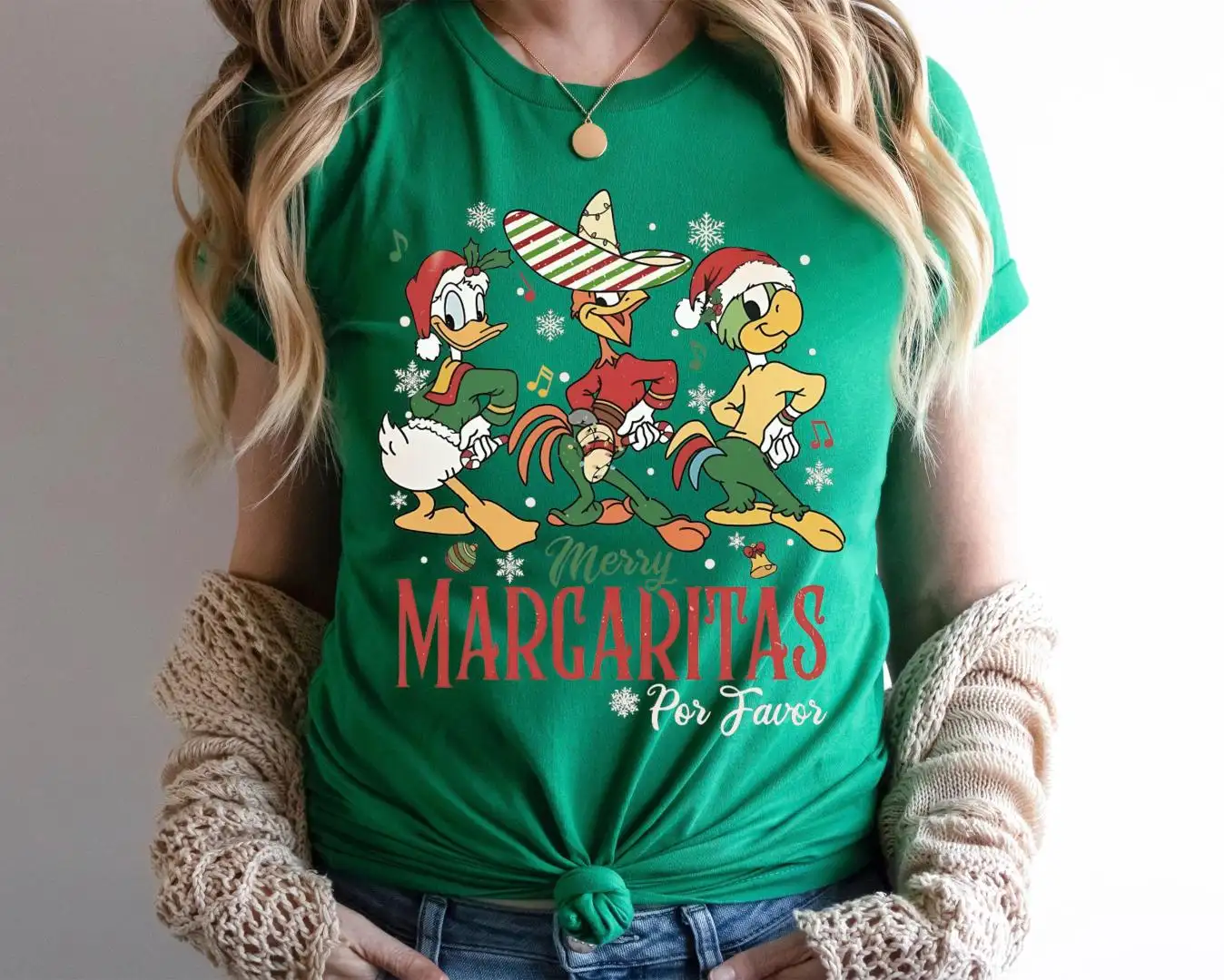 Merry Margaritas Por Favor Shirt, Mexican Christmas Sweater, Disney The Three Caballeros Christmas T-Shirt, Jose Panchito Carioca Donald Tee