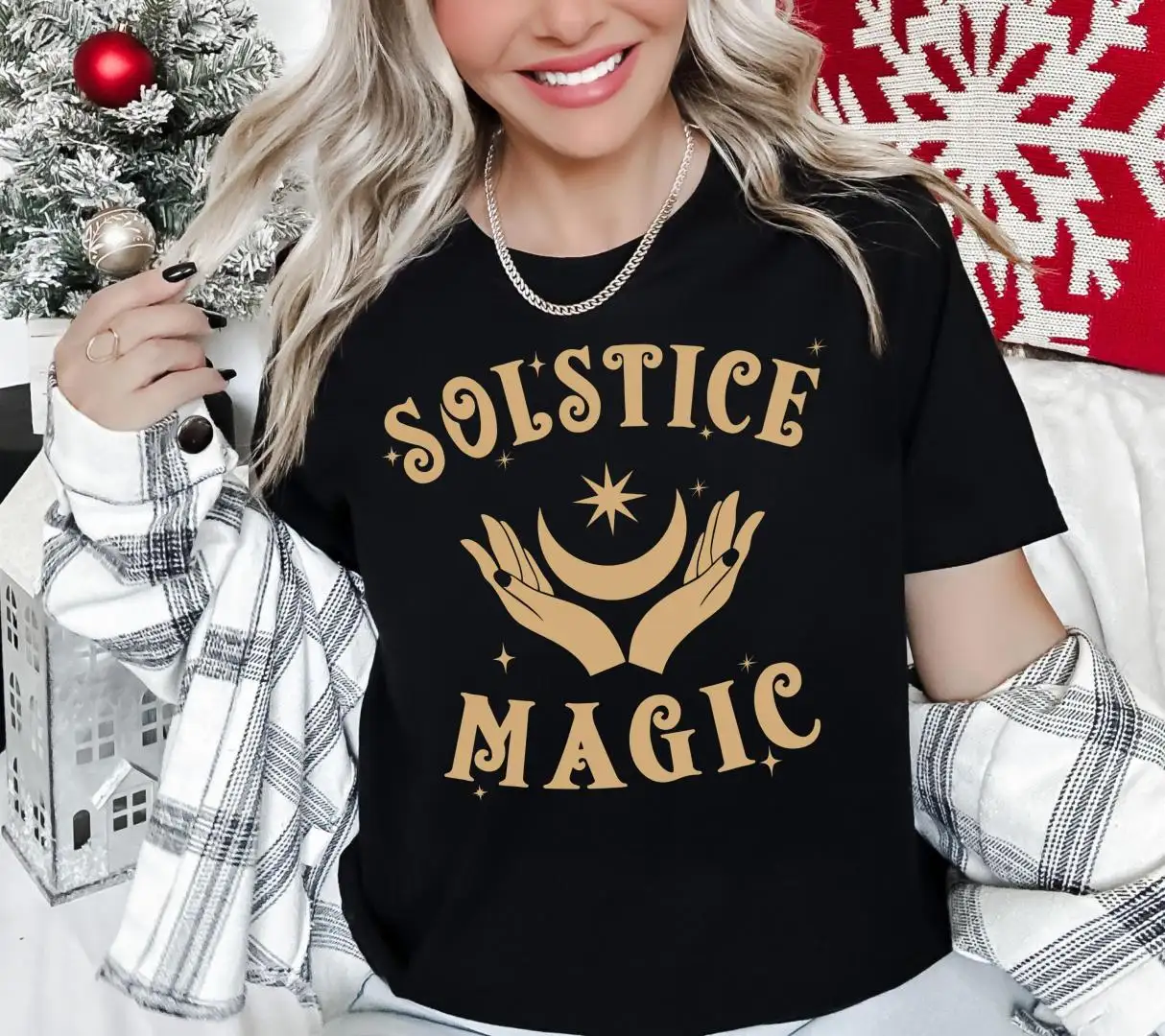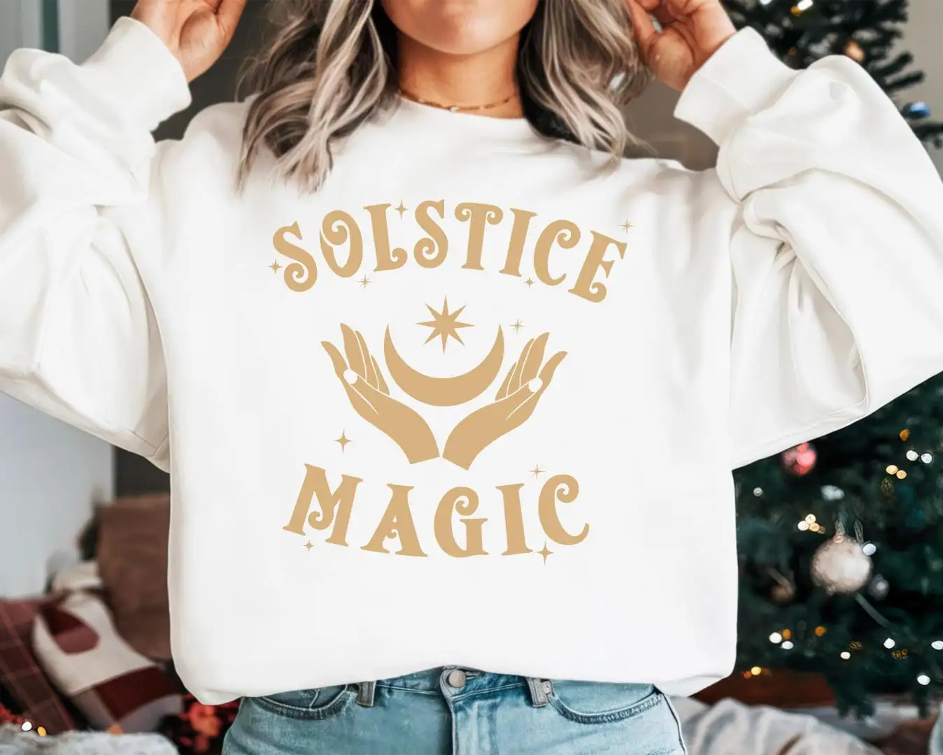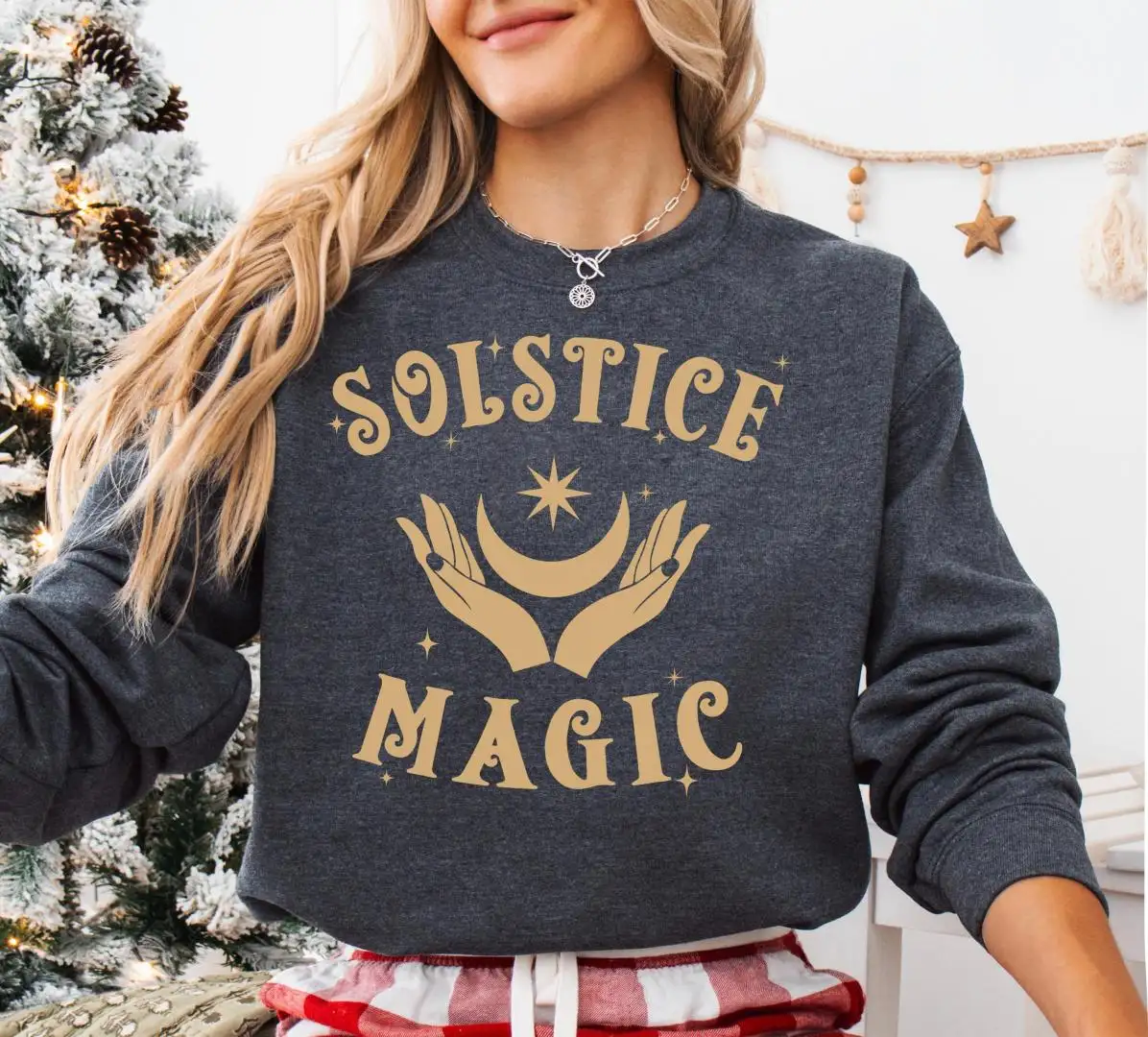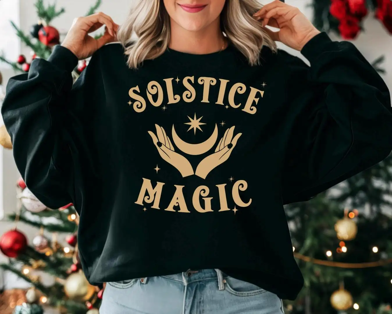 Merry Solstice Sweatshirt, Yule Holiday Shirt, Winter Solstice Shirt, Solstice Magic Christmas Tee, Solstice Moon Shirt, Pagan Xmas T-Shirt