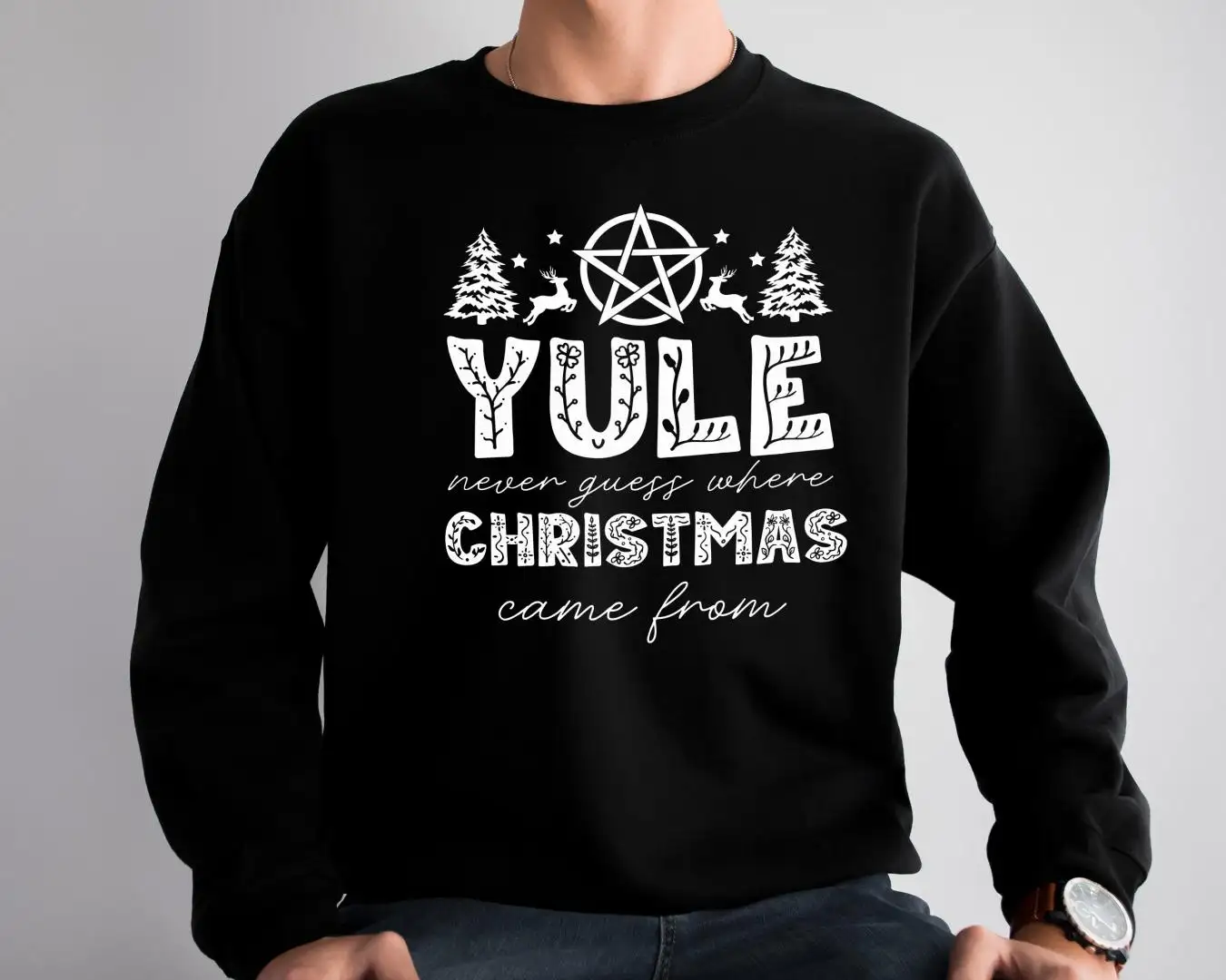 Merry Yule and Happy Solstice Christmas Sweatshirt, Happy Winter Solstice Shirt, Merry Yule Holiday Sweatshirt, Winter Solstice Sweatshirt