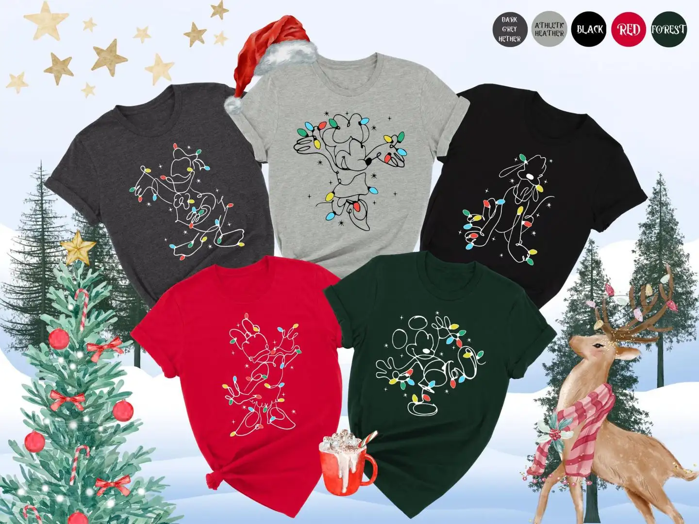 Review Mickey and Friends Christmas Lights Shirt, Christmas Trip Shirt, Disneyland Xmas, Holiday Family Matching Tee, Disney Christmas Crew Shirt