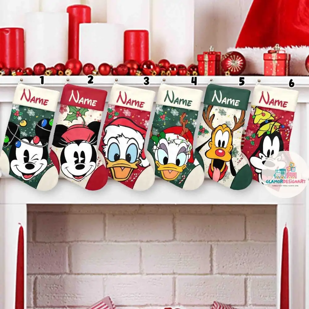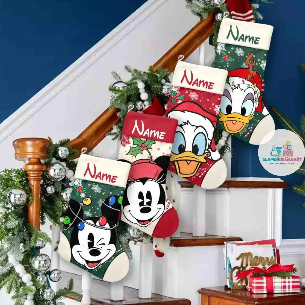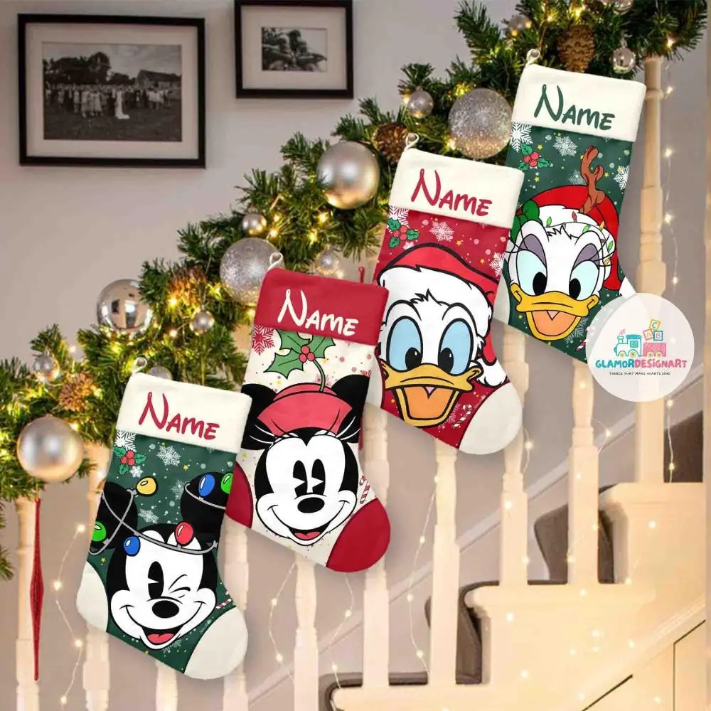 Mickey And Friends Christmas Stockings Disney Christmas Stockings, Characters Christmas Socks Home Decoration, Custom Name Stockings