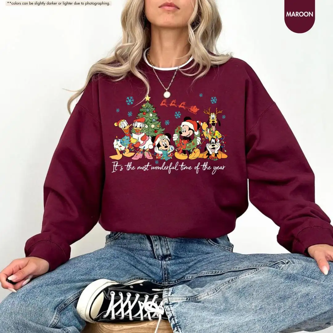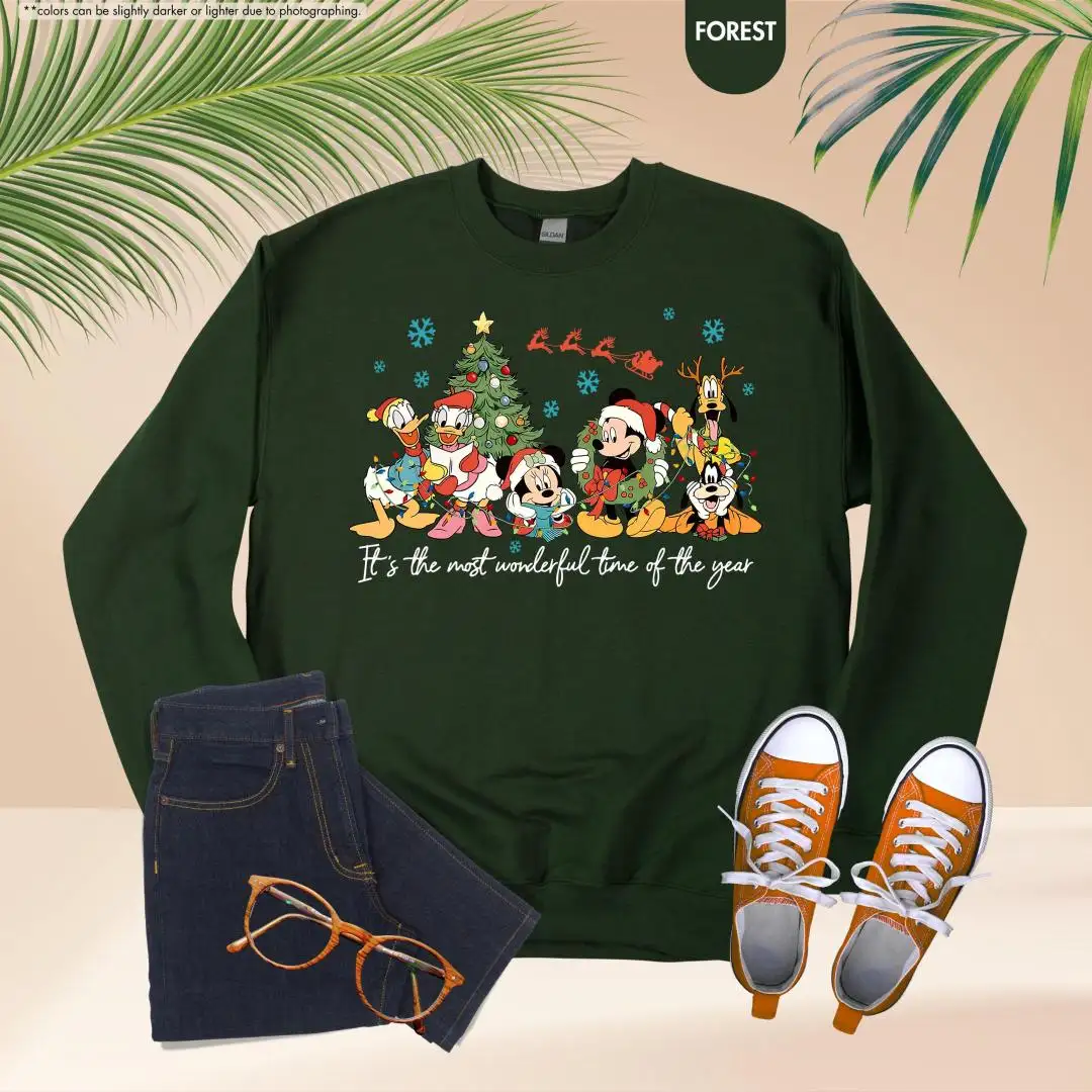 Review Mickey and Friends Christmas Sweatshirt, It's the Most Wonderful Time of the Year, Disneyland Christmas Hoodie, Disney Holiday Sweater