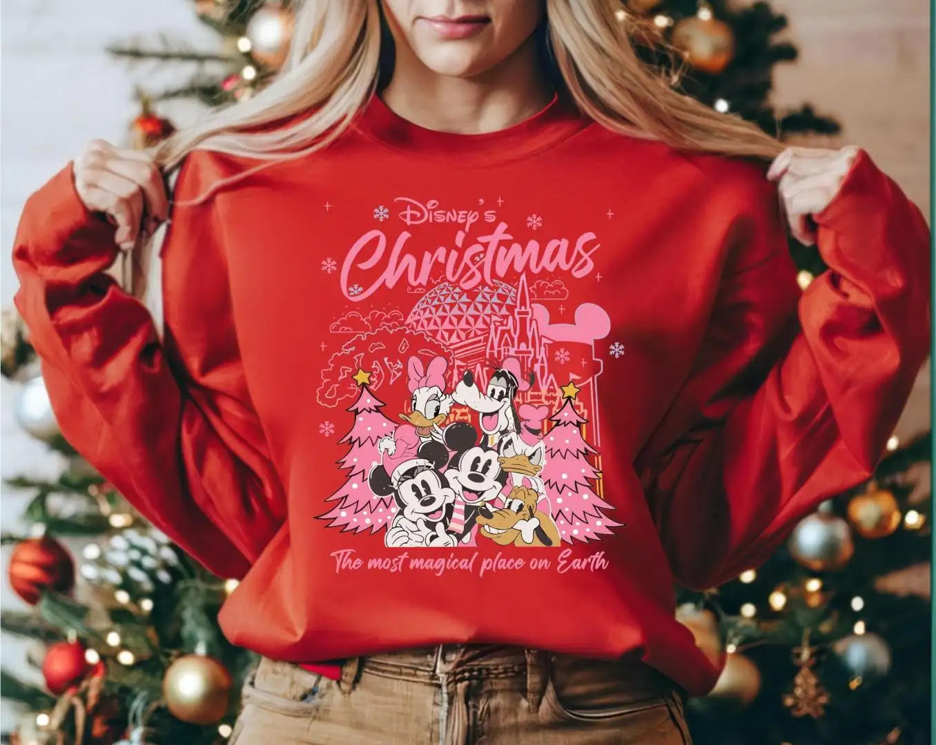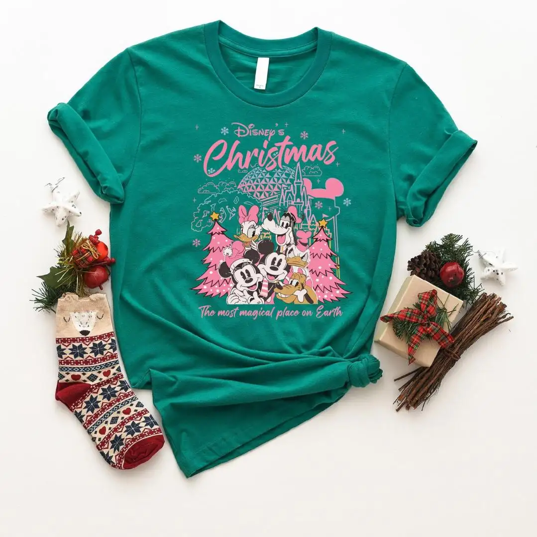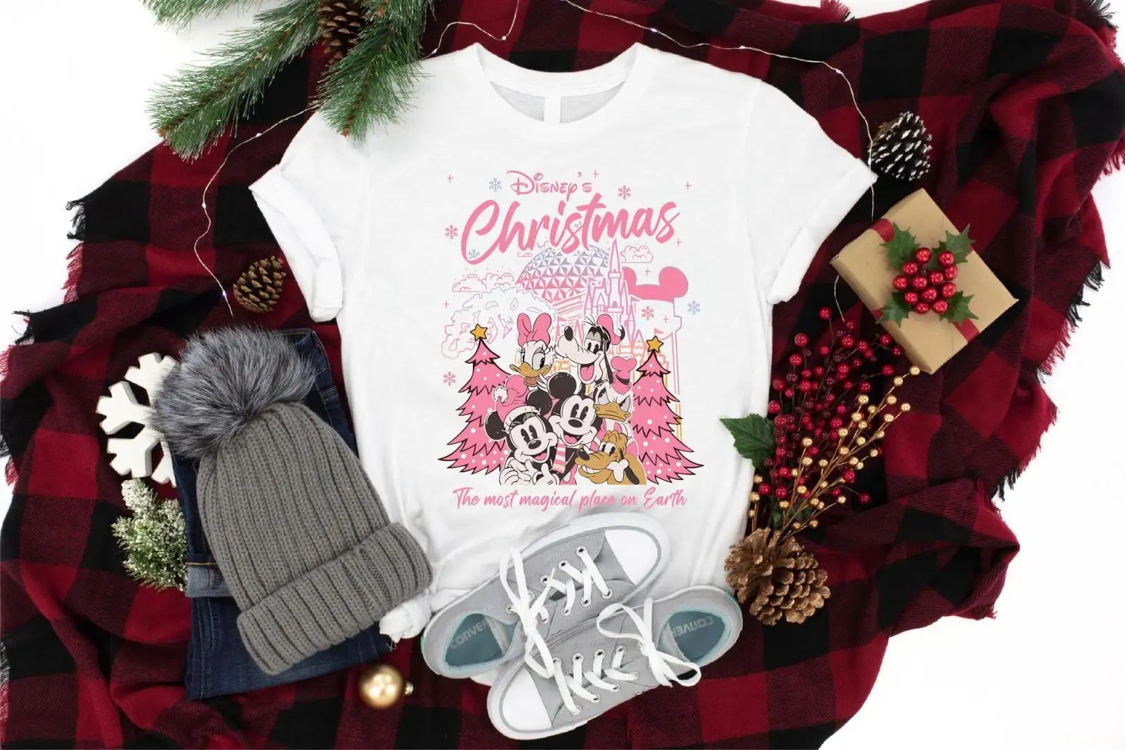 Review Mickey And Friends Pink Christmas Shirt, Disney Christmas Shirt, Very Merry Xmas Tee, Disney Family Holiday Tee, Disneyland Xmas Tree Shirt