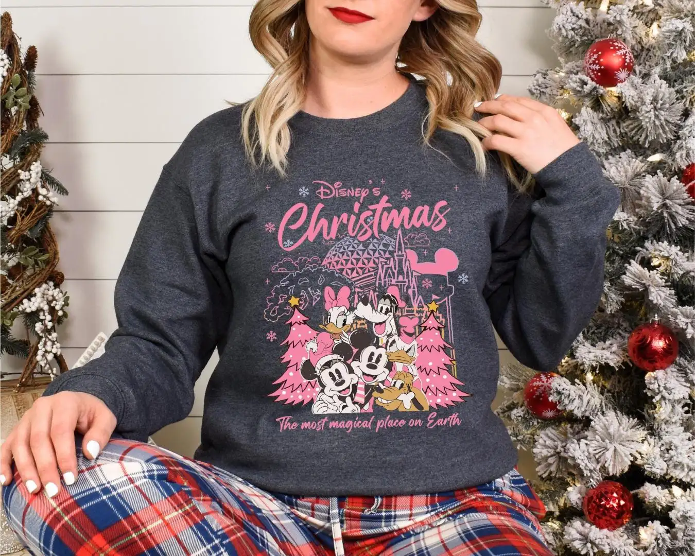 Mickey And Friends Pink Christmas Shirt, Disney Christmas Shirt, Very Merry Xmas Tee, Disney Family Holiday Tee, Disneyland Xmas Tree Shirt