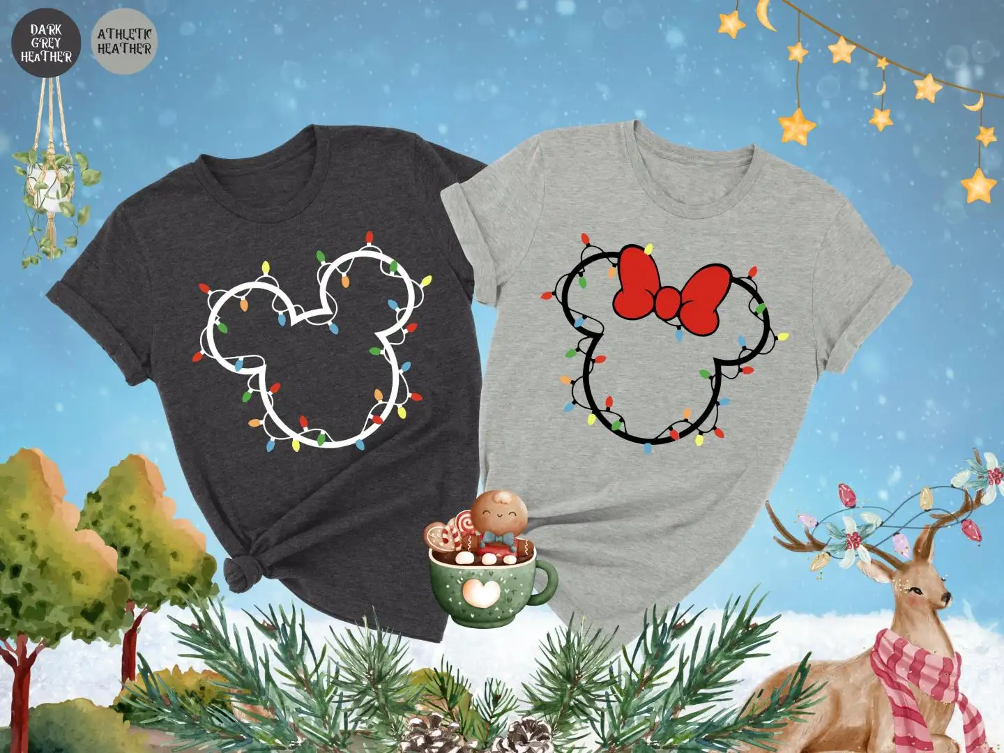 Mickey and Minnie Christmas shirt, Christmas Family Matching Shirt, Disney Christmas Couple Shirt, Christmas Light, Disney Christmas Shirt