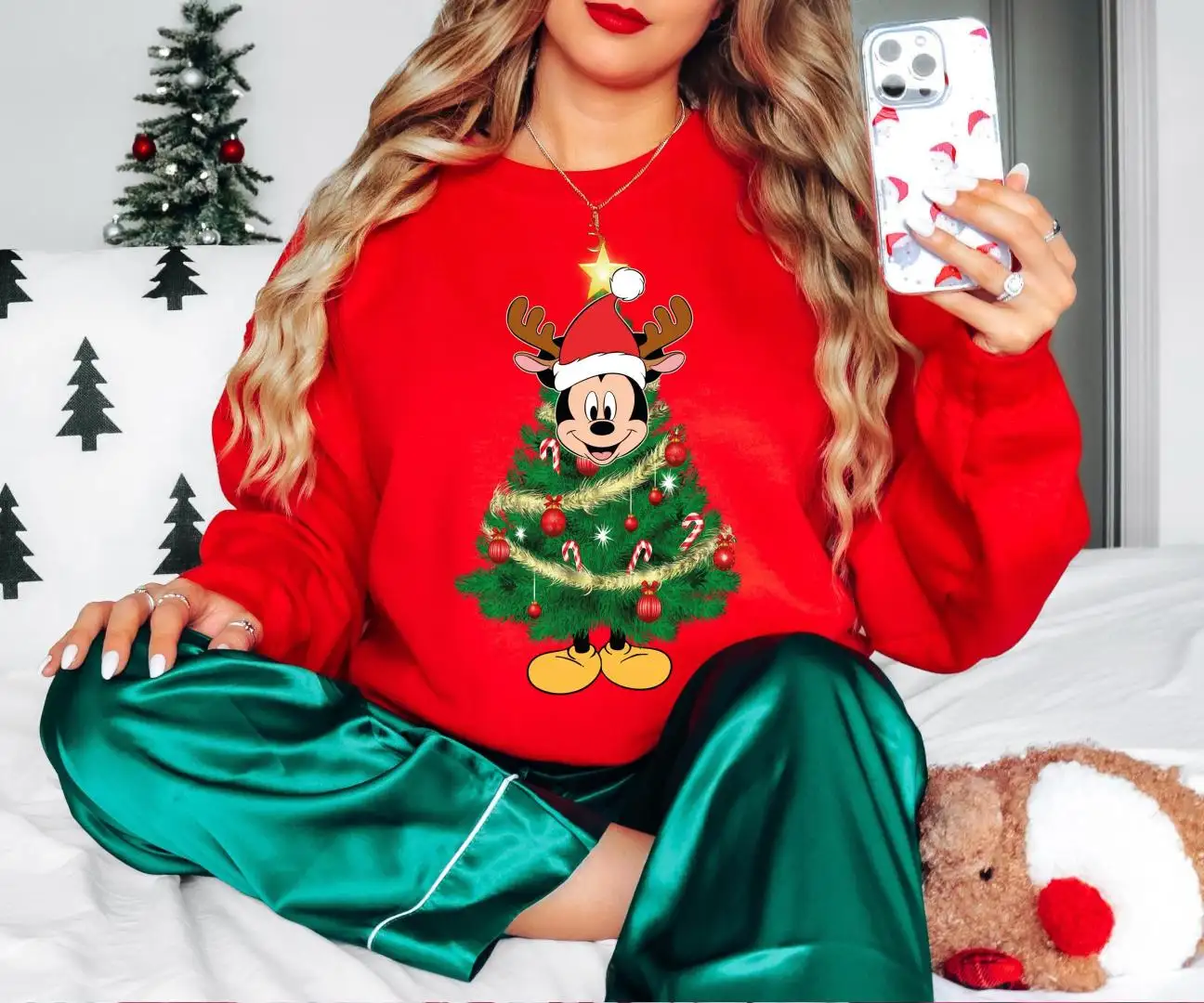 Mickey & Friends Christmas Tree Shirt, Disney Xmas Lights Sweatshirt, Disneyland Family Holiday Tee, Daisy Duck Donald Duck Goofy Xmas Tee