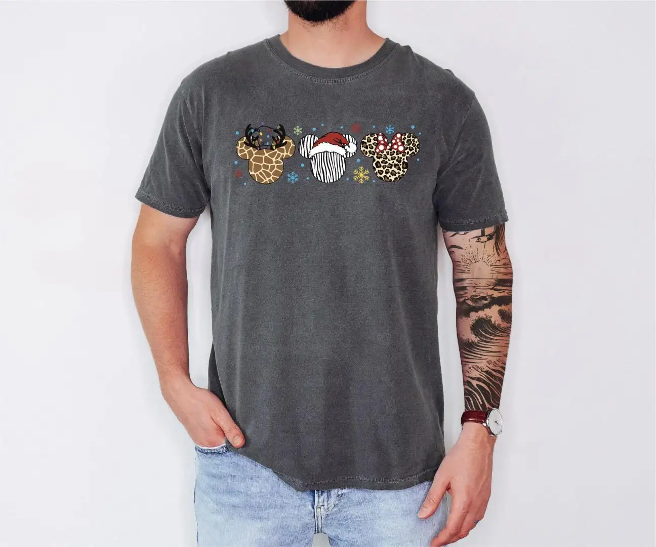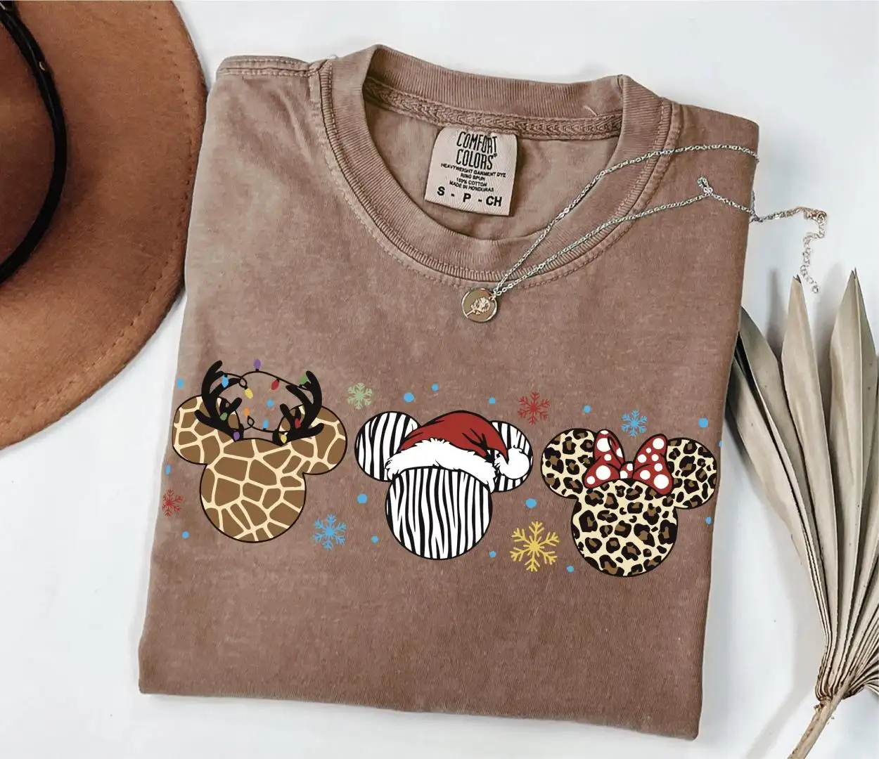 Mickey Head Christmas Safari Tee, Walt Disney World Winter Vacation T-Shirt, Comfort Colors® Animal Kingdom Shirt, Wild About Disney Xmas