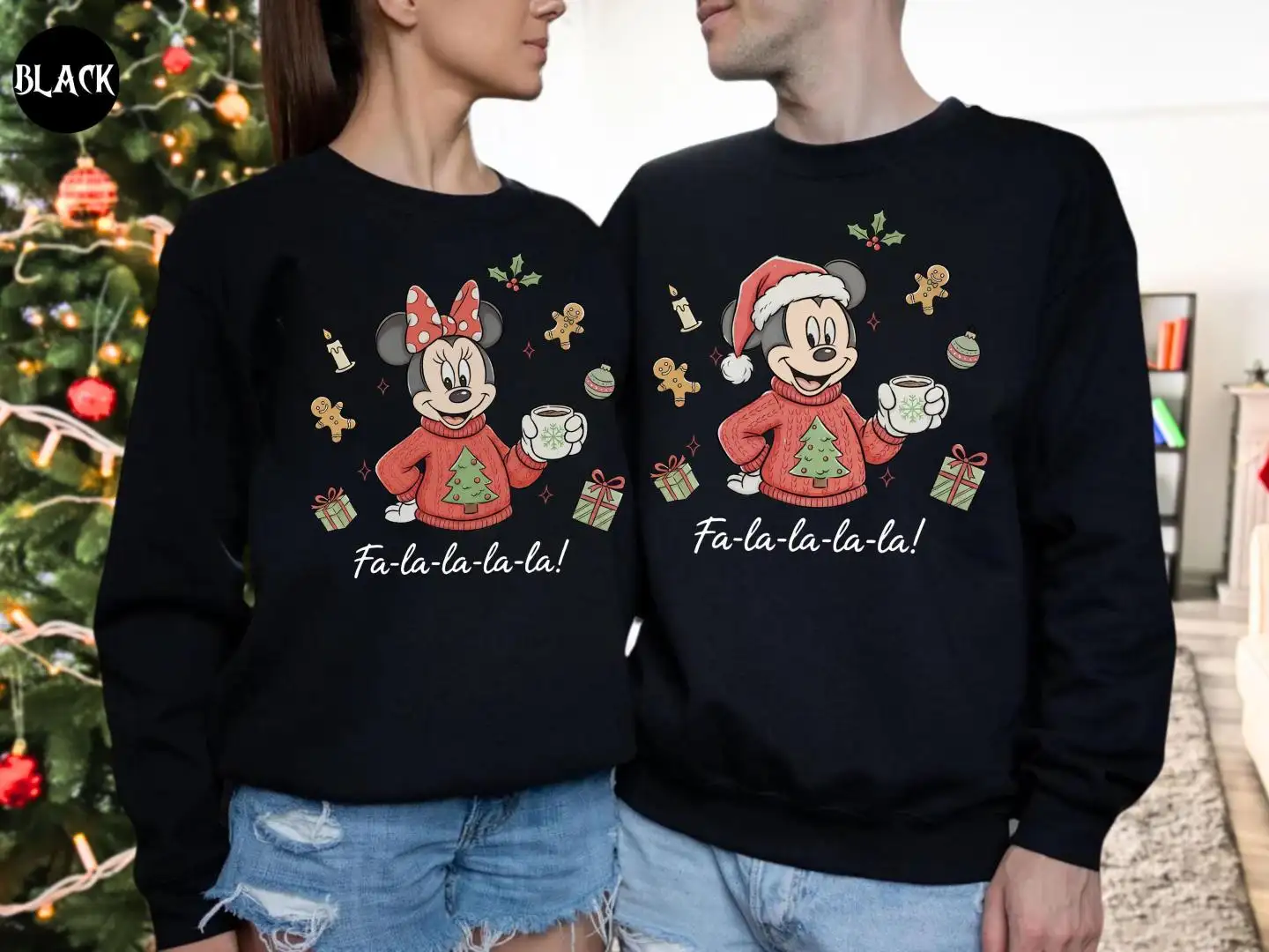 Mickey Minnie Christmas Fa La La La Sweatshirt, Matching Couple Disney Holiday Hoodie, Winter Disneyland Sweater, Xmas Couple Gift