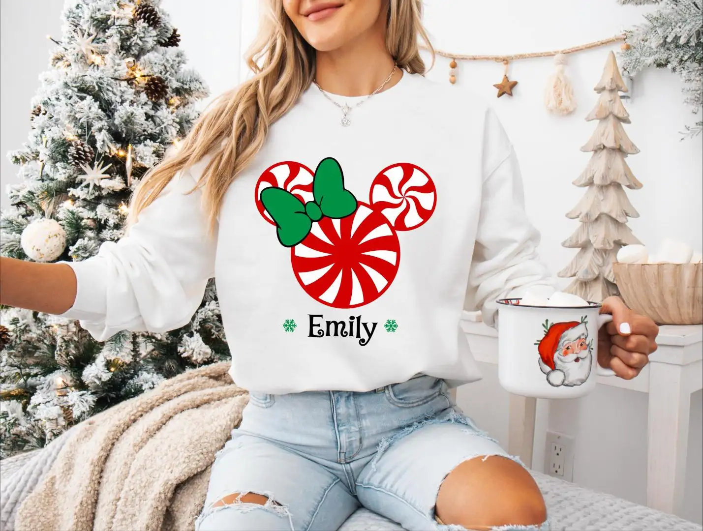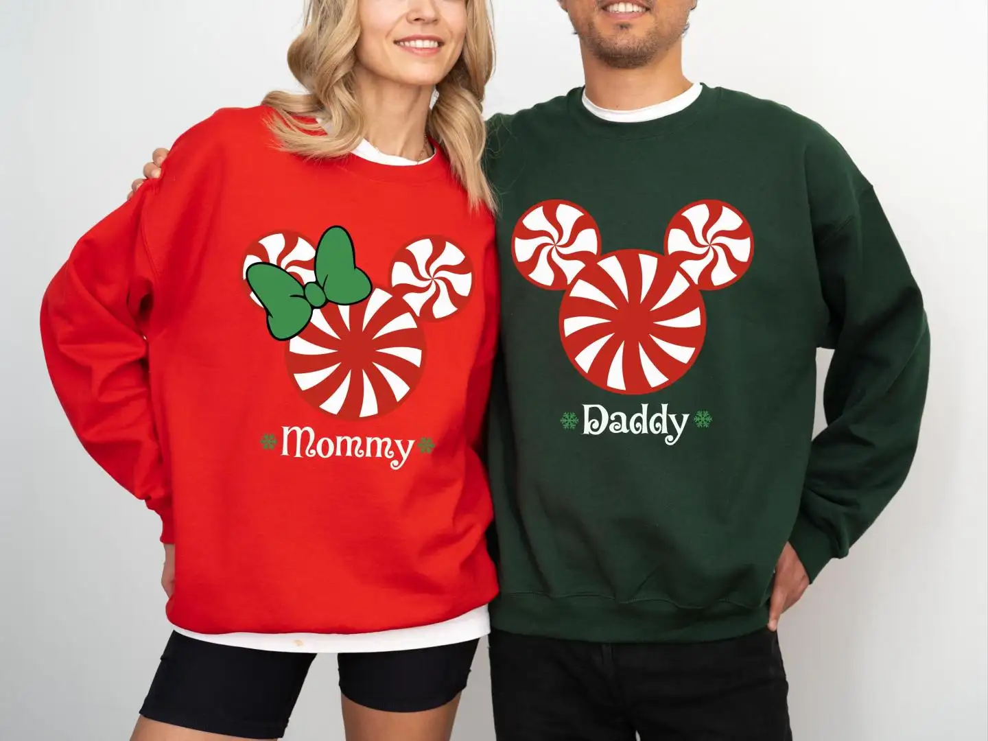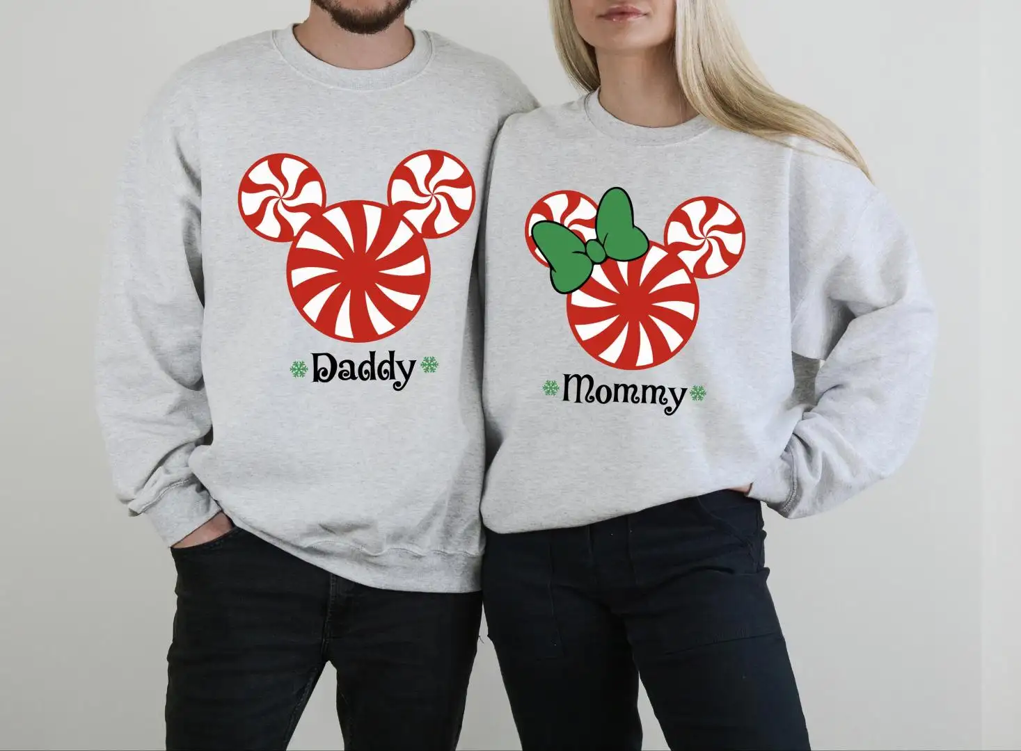 Mickey Minnie Peppermint Candy Matching Shirt, Christmas Candy Family Custom Name Sweatshirt, Merry Christmas Disney Couple Sweater