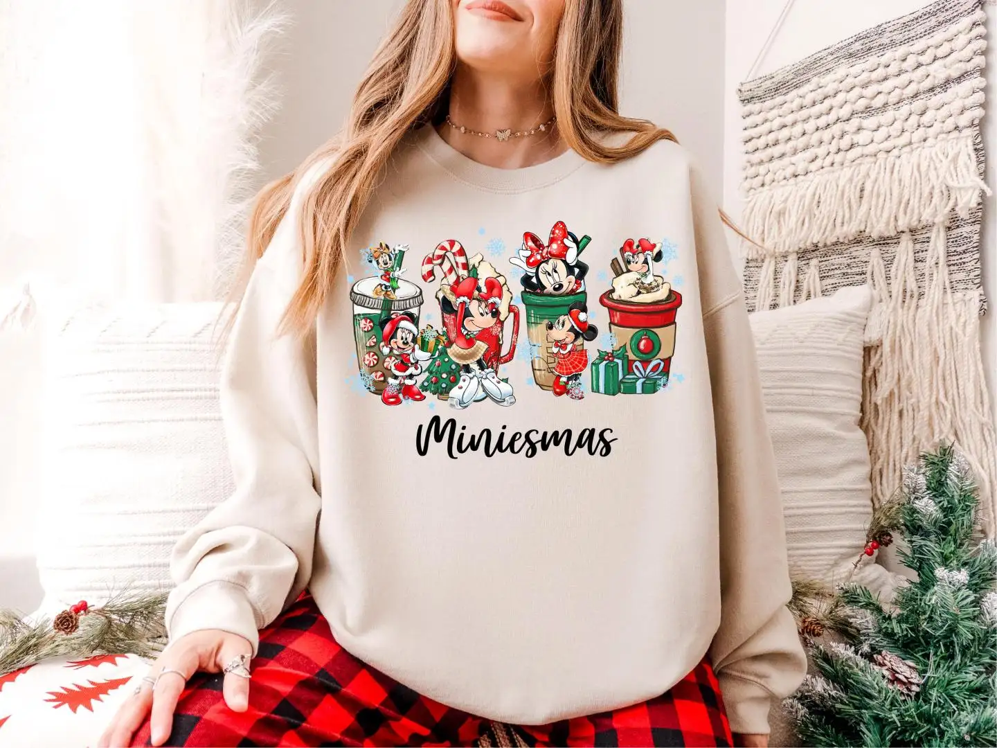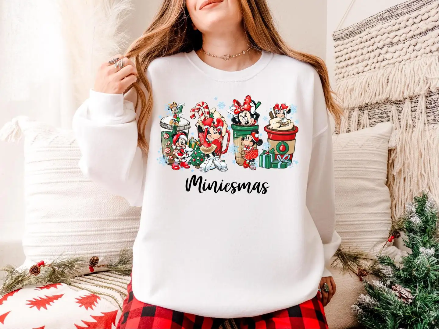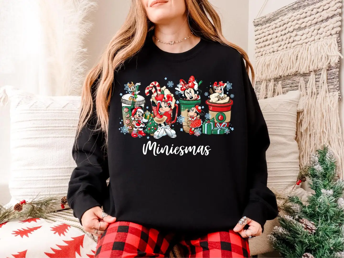 Miniesmas Christmas Shirt, Minnie Mouse Christmas Sweatshirt, Disney Custom Name Christmas Sweater, Minnie Christmas Drinks Girls Trip Tee