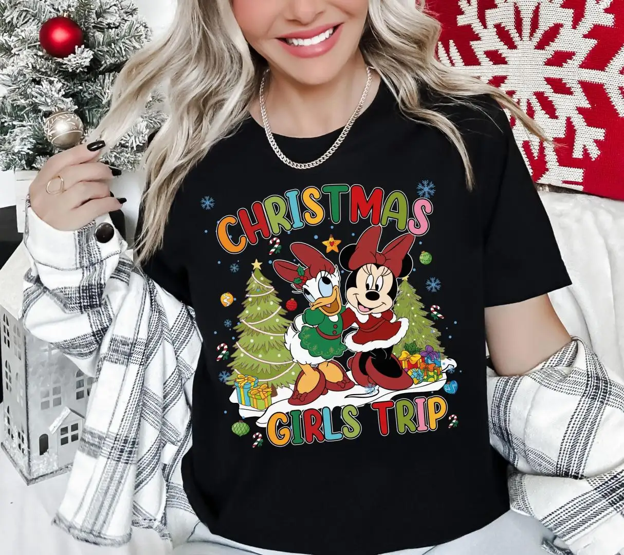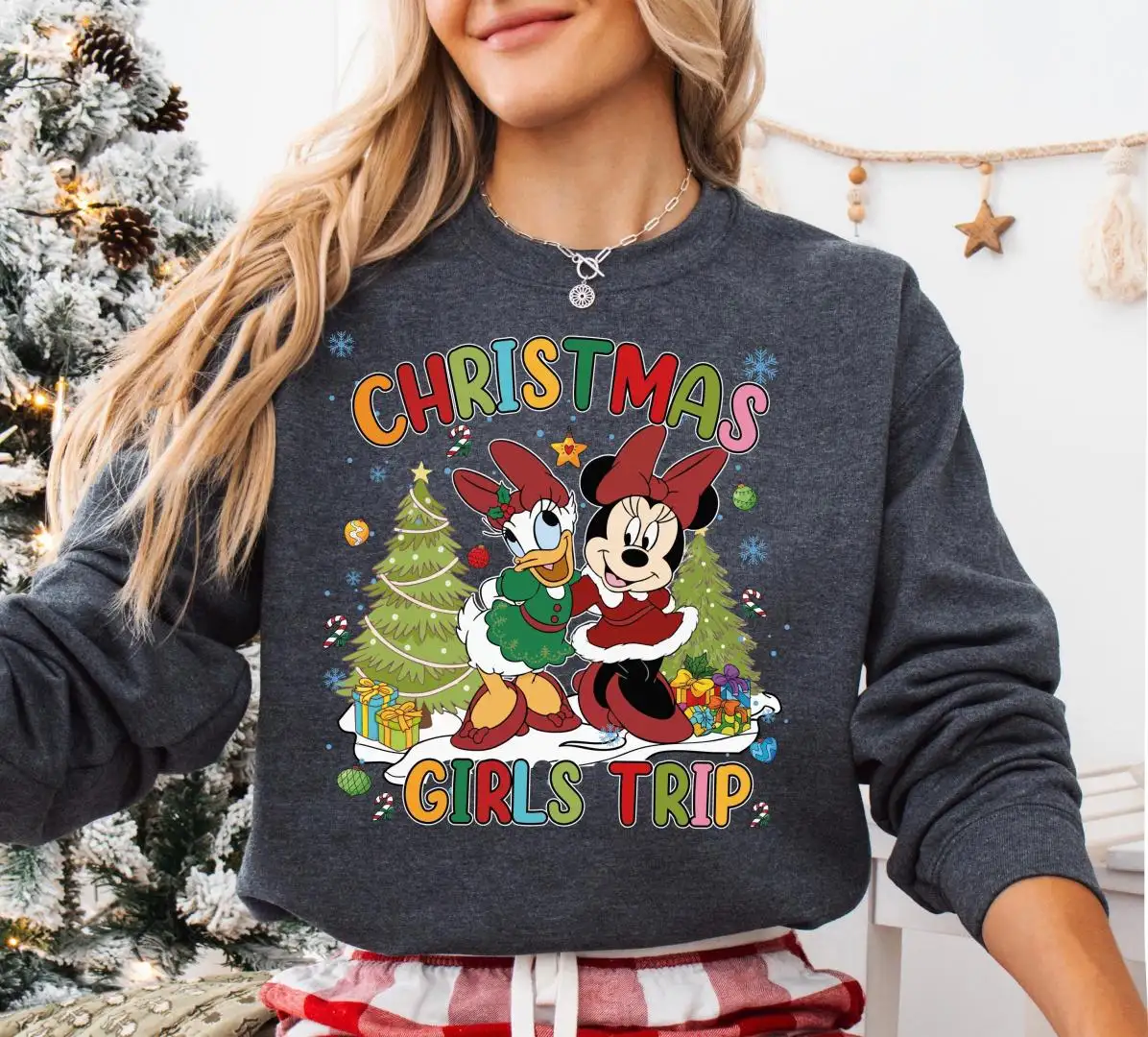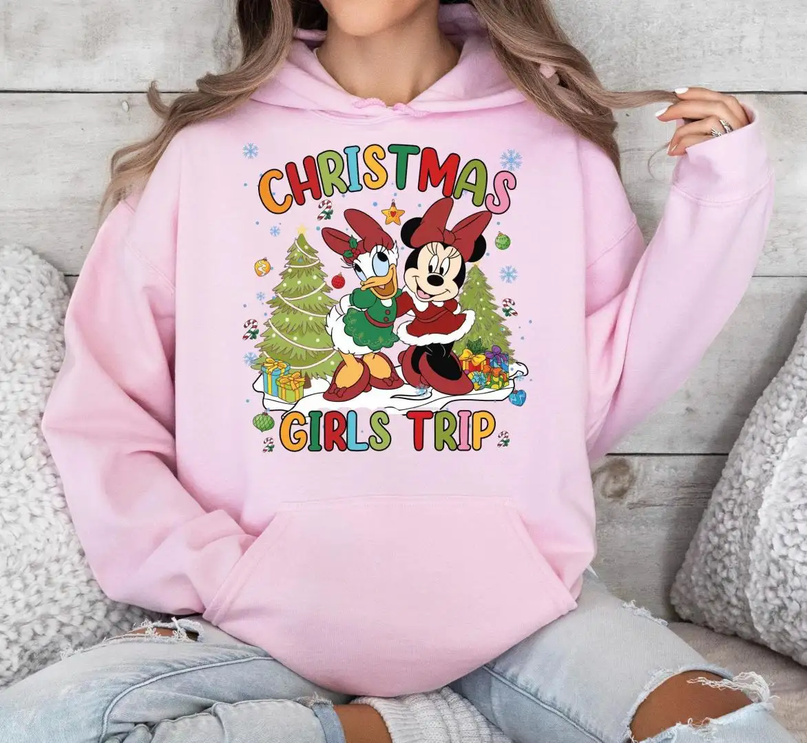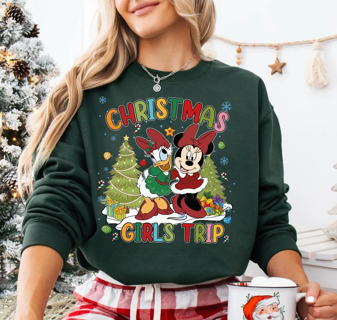 Minnie And Daisy Christmas T-Shirt, Disneyland Besties Christmas Vacation Hoodie, WDW Xmas Shirt, Disney Christmas Girls Trip Sweatshirt