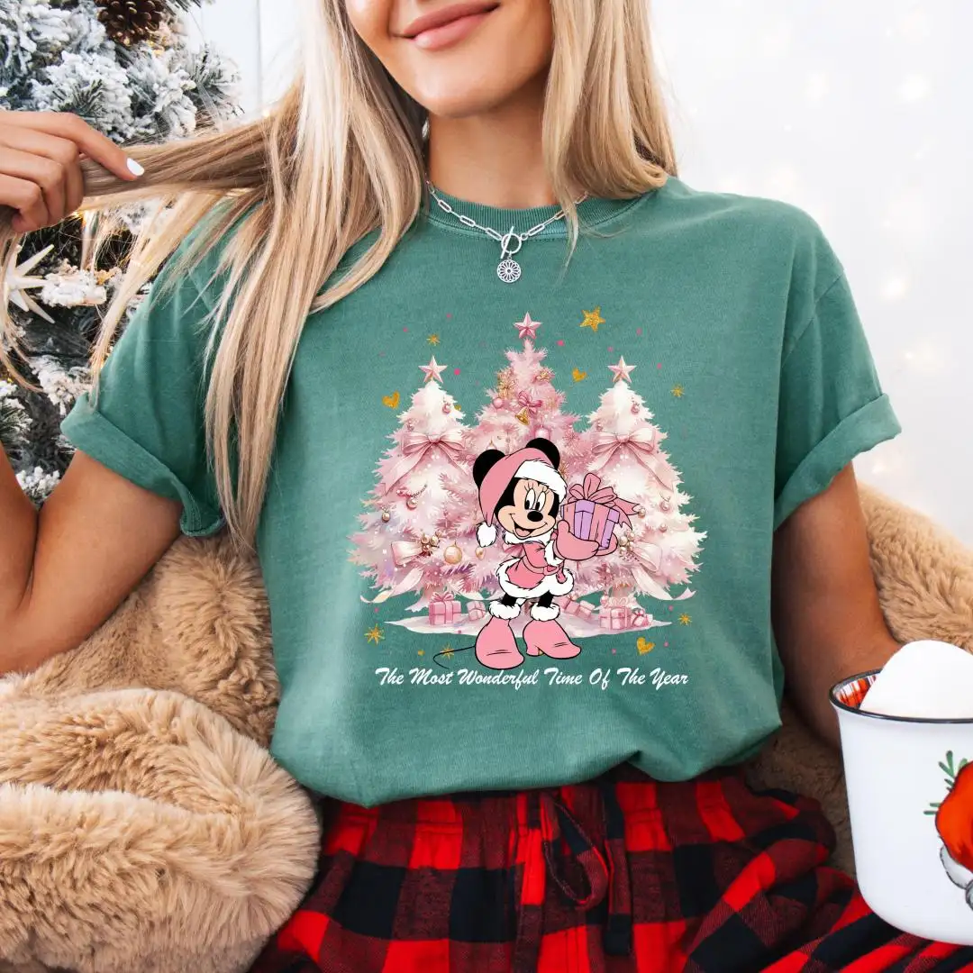 Review Minnie Mouse Christmas Shirt with Pink Tree Design