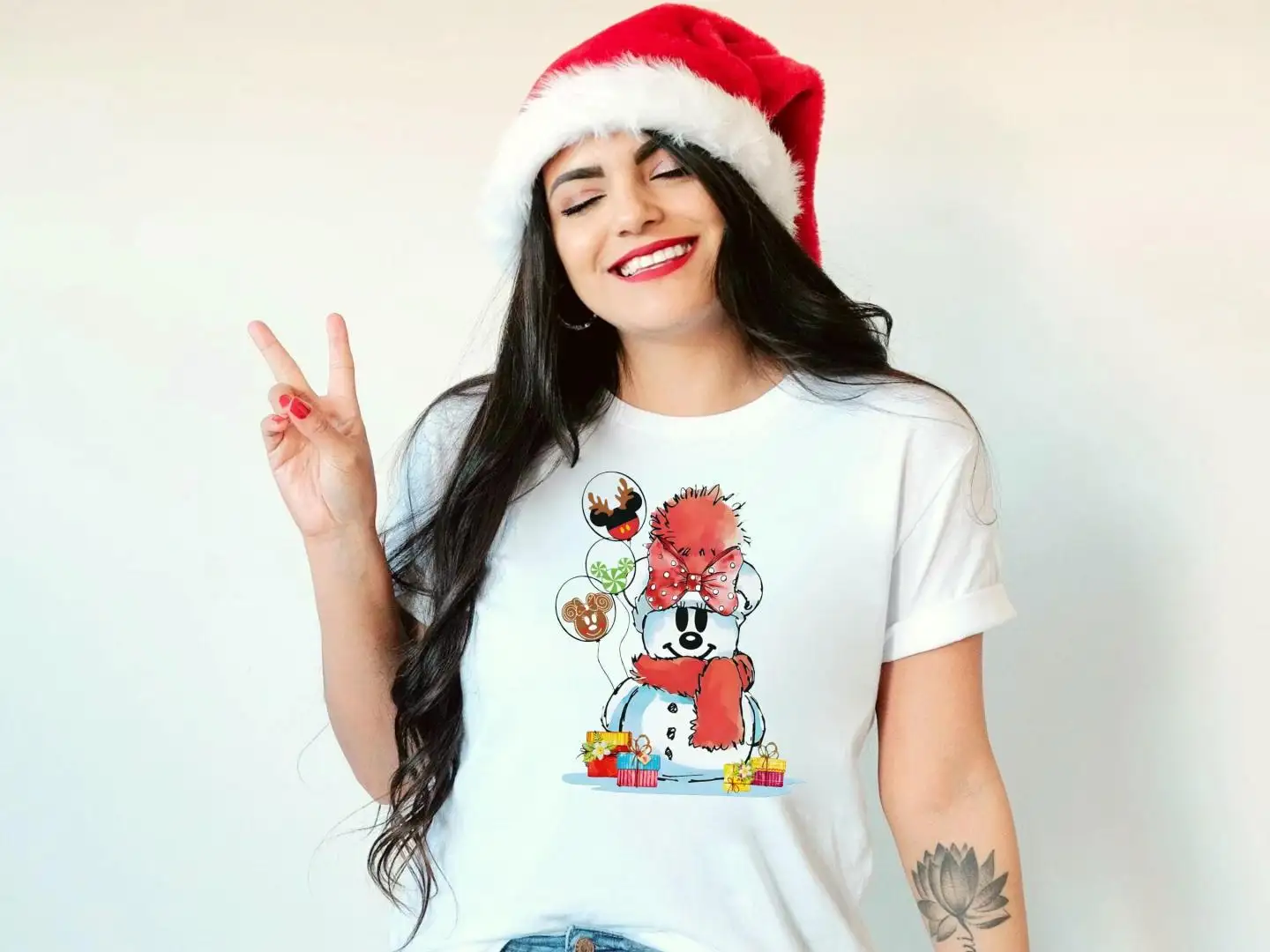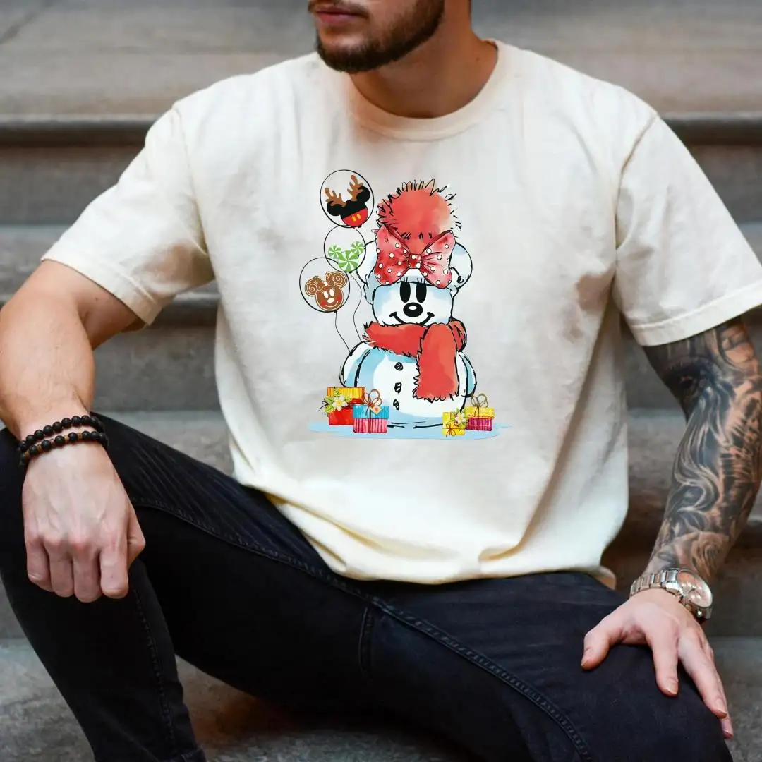 Review Minnie Snowman Christmas Shirt, Retro Disney Christmas Shirt, Cute Disneyland Vacation Shirt, Disney Winter Snowman, Disney Christmas Shirt