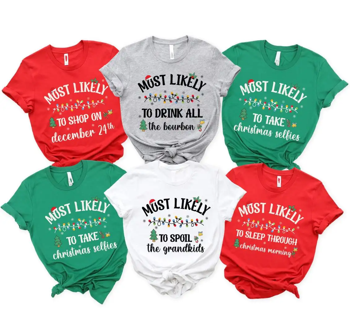 Most Likely to Christmas Shirts, Custom Holiday Tee, XMAS Funny Party Sweatshirt, Christmas Family Matching Hoodie