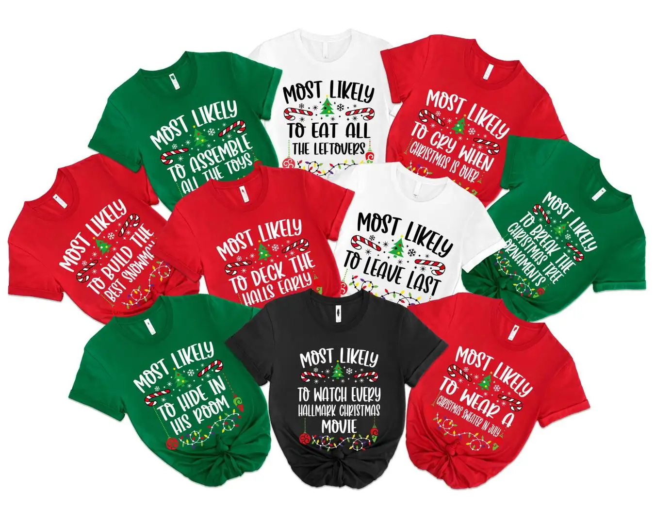 Most Likely to Christmas Shirts, XMAS Funny Party Sweatshirt, Family Holiday Tee, Custom Christmas Matching Hoodie