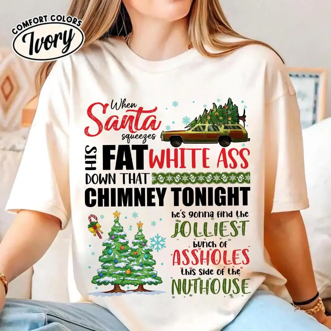 National Lampoons Christmas Vacation Shirt When Santa Squeezes His Fat White Ass Shirt Griswold Christmas Shirt Family Matching Xmas Shirt