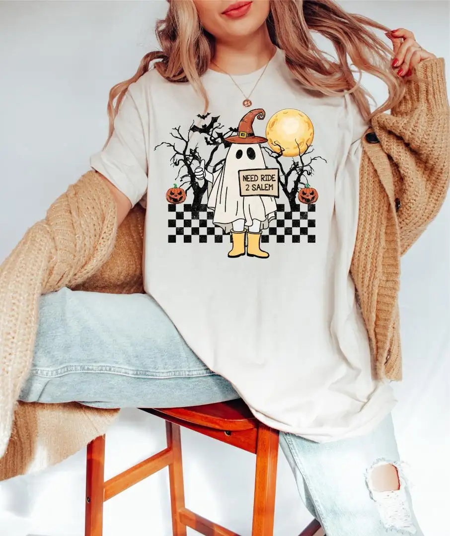 Need Ride To Salem Shirt, Hitchhiking Ghost, Funny Halloween Shirt, Halloween Gifts, Halloween Ghost Shirt, Salem Shirt