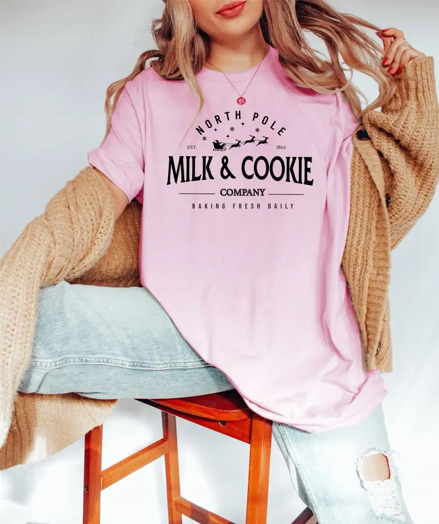 Review North Pole Milk and Cookie Company Shirt / Cute Christmas Sweater / Christmas Cookies Shirt / Santa and Reindeers / Christmas Baking Shirt