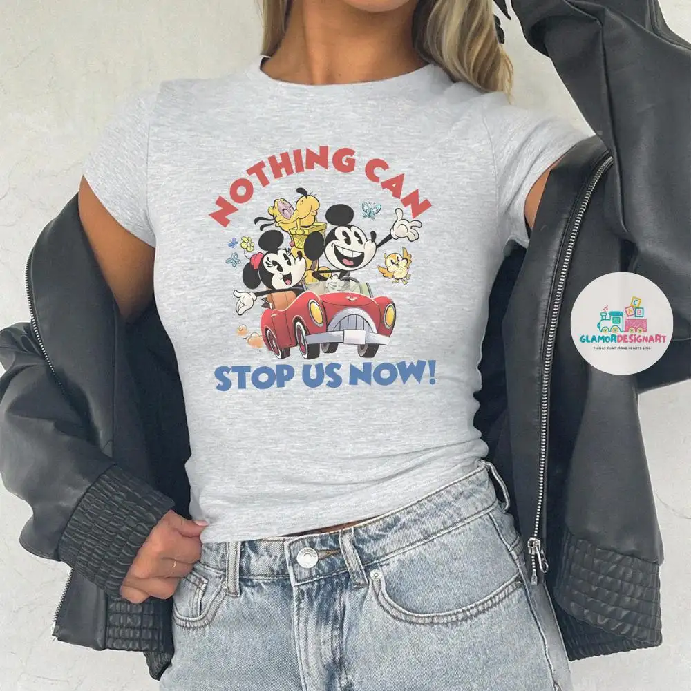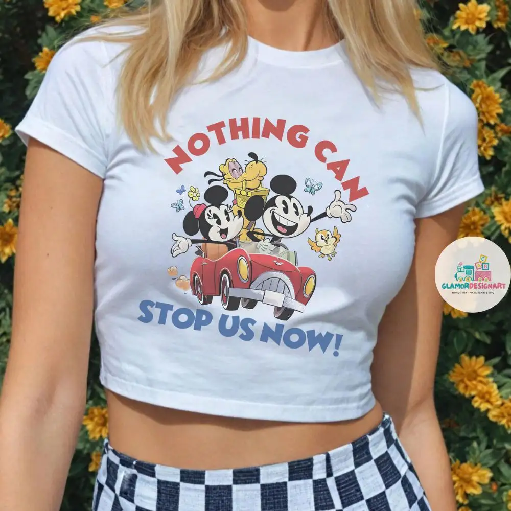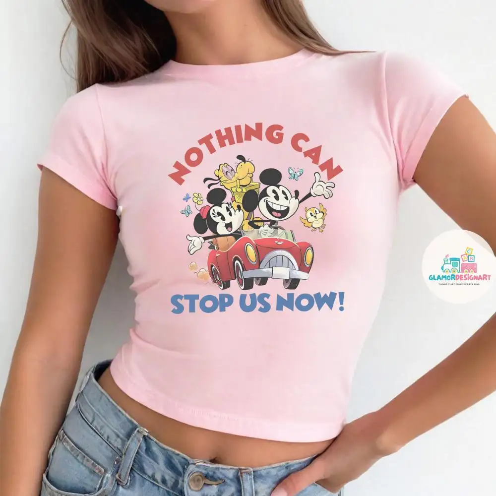 Nothing can stop us now Baby Tee Crop Top, WDW Disneyland Girls Trip Shirt, Mickey & Minnie's runaway railway, Disney girly aesthetic Shirt