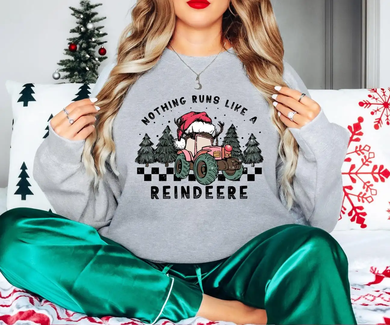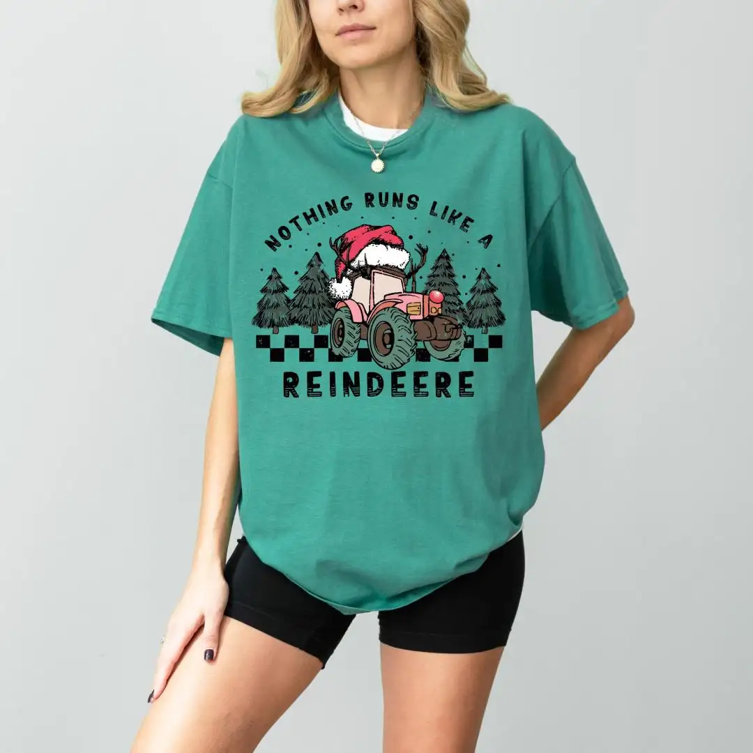 Nothing Runs Like a Reindeer Shirt, Tractor Christmas Season T-Shirt, Christmas Kids Sweatshirt, Tractor Christmas Light Santa Tee