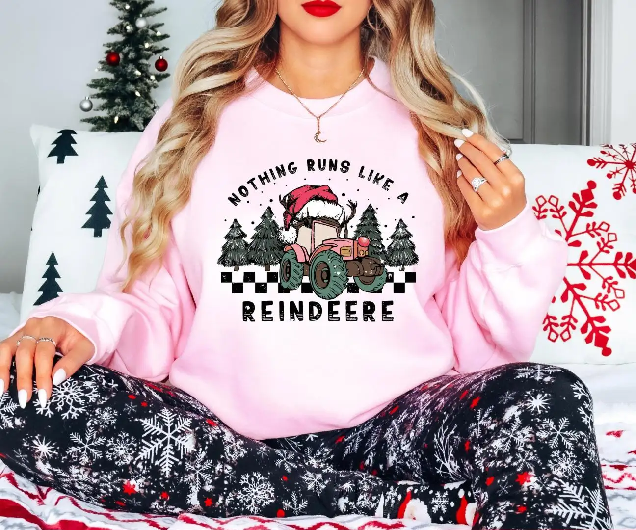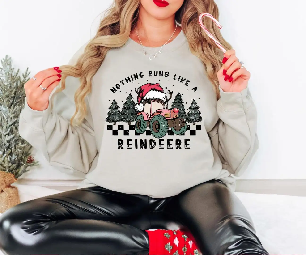 Review Nothing Runs Like a Reindeer Shirt, Tractor Christmas Season T-Shirt, Christmas Kids Sweatshirt, Tractor Christmas Light Santa Tee