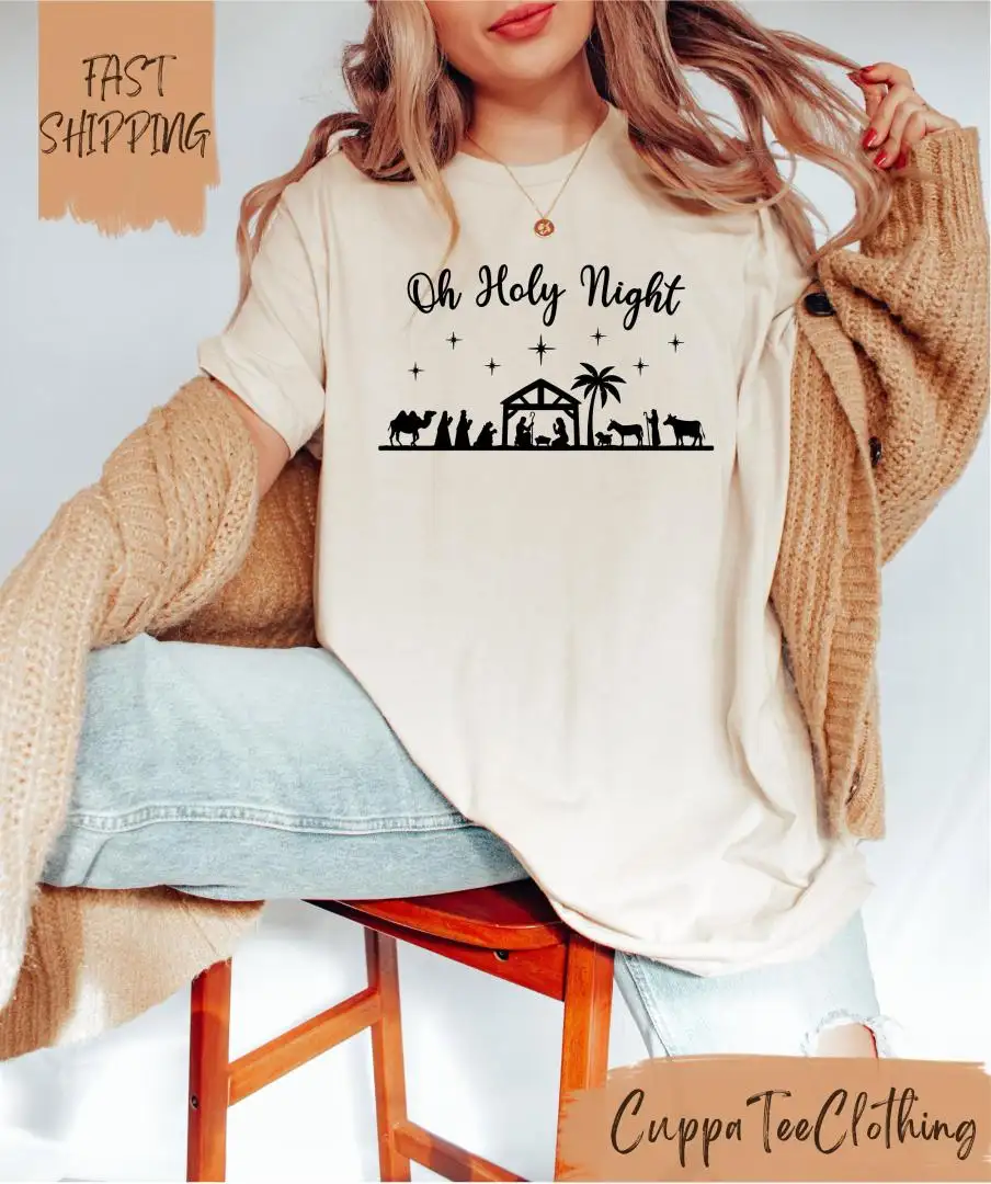 Review Oh Holy Night Shirt, Jesus Shirt, Christmas Gifts, Christmas Holy Night, Religious Christmas Tee, Religious Shirt, Nativity Story Shirt