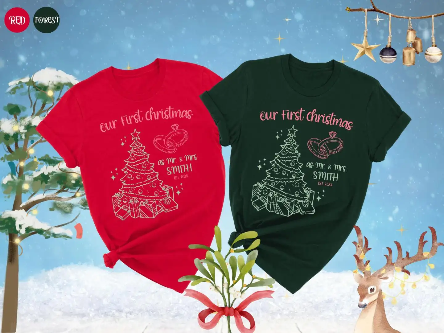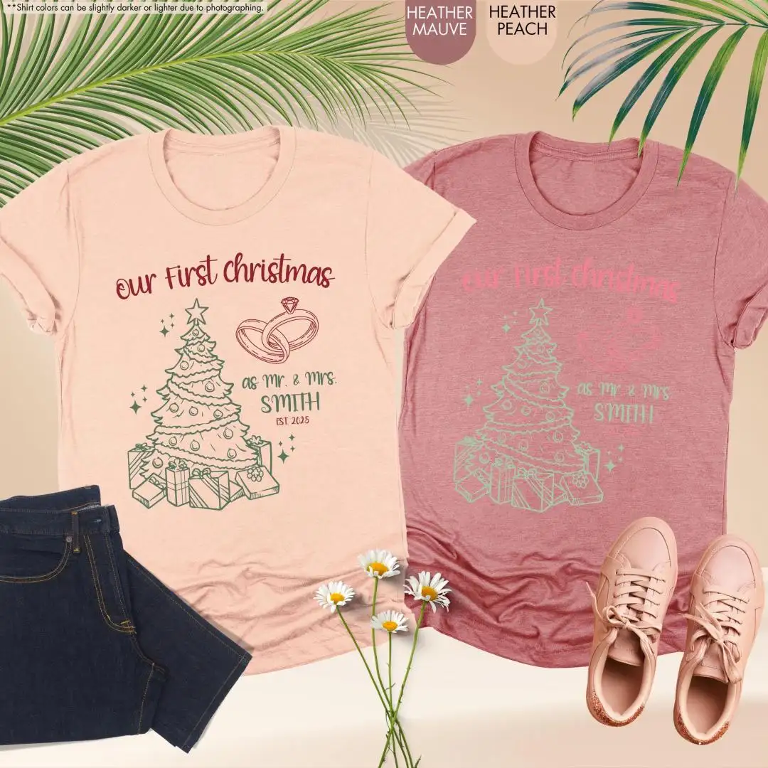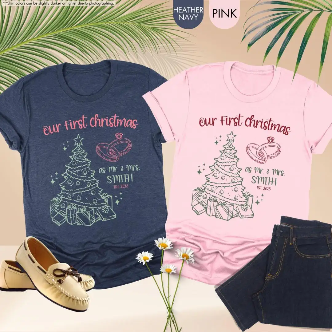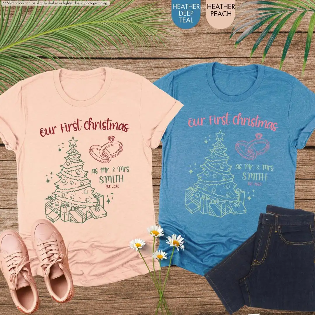 Our First Christmas Shirts, Just Married Shirt, Custom Mr Mrs Couple Holiday Shirts, Newlywed Christmas Shirt, Matching Couples Xmas Shirts