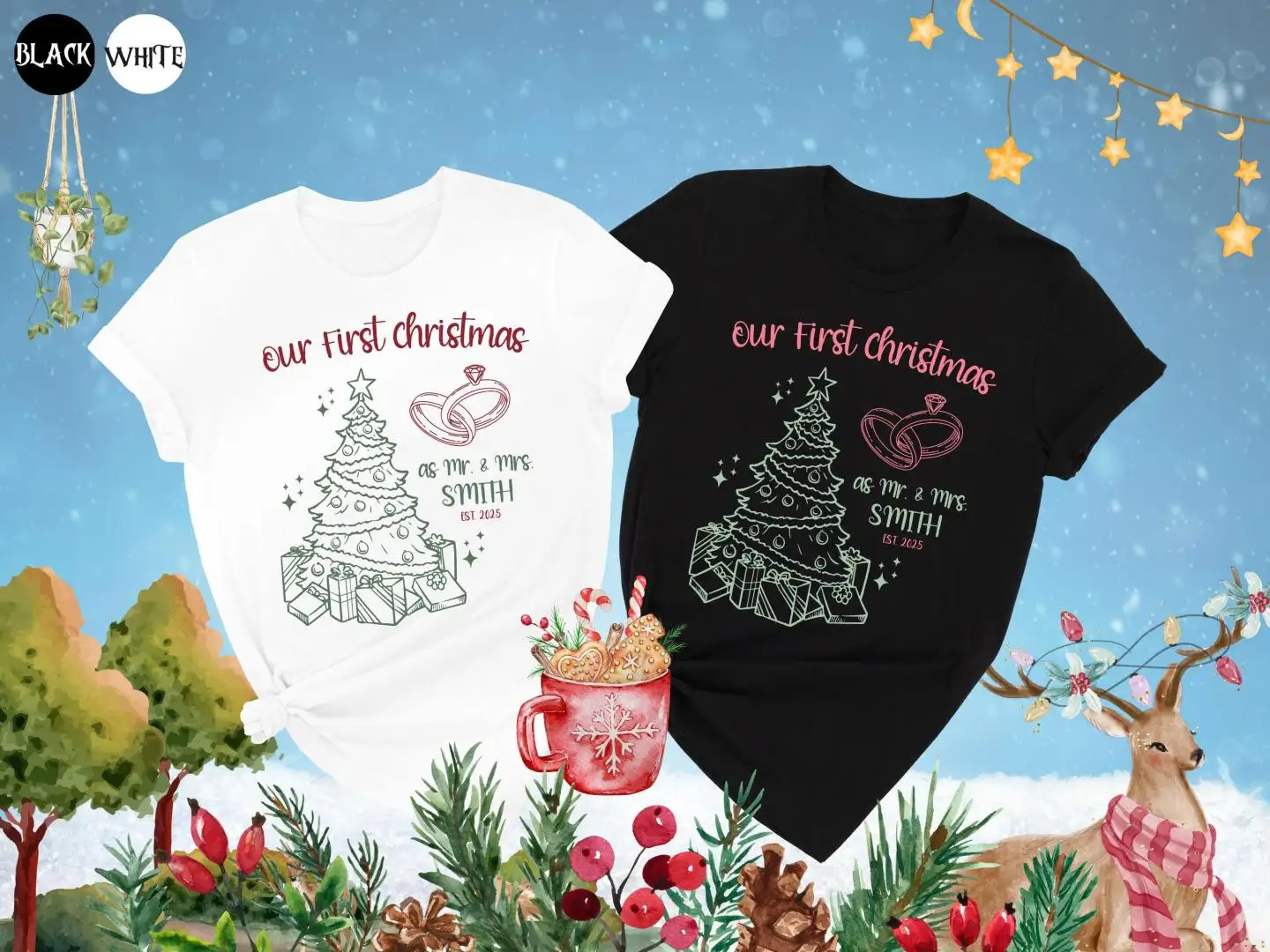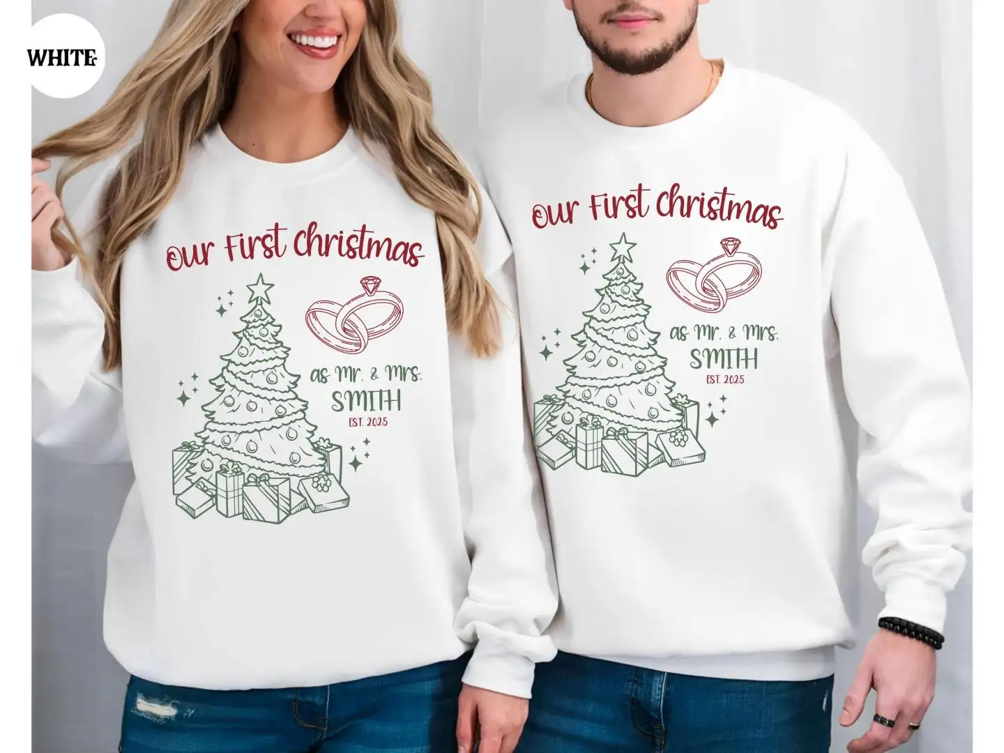 Review Our First Christmas Shirts, Just Married Shirt, Custom Mr Mrs Couple Holiday Shirts, Newlywed Christmas Shirt, Matching Couples Xmas Shirts